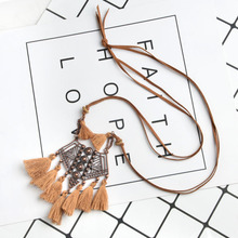 European and American New Feather Necklace round Hollow Dreamcatcher Personality Crescent-Shaped Long Feather Tassel Sweater Chain