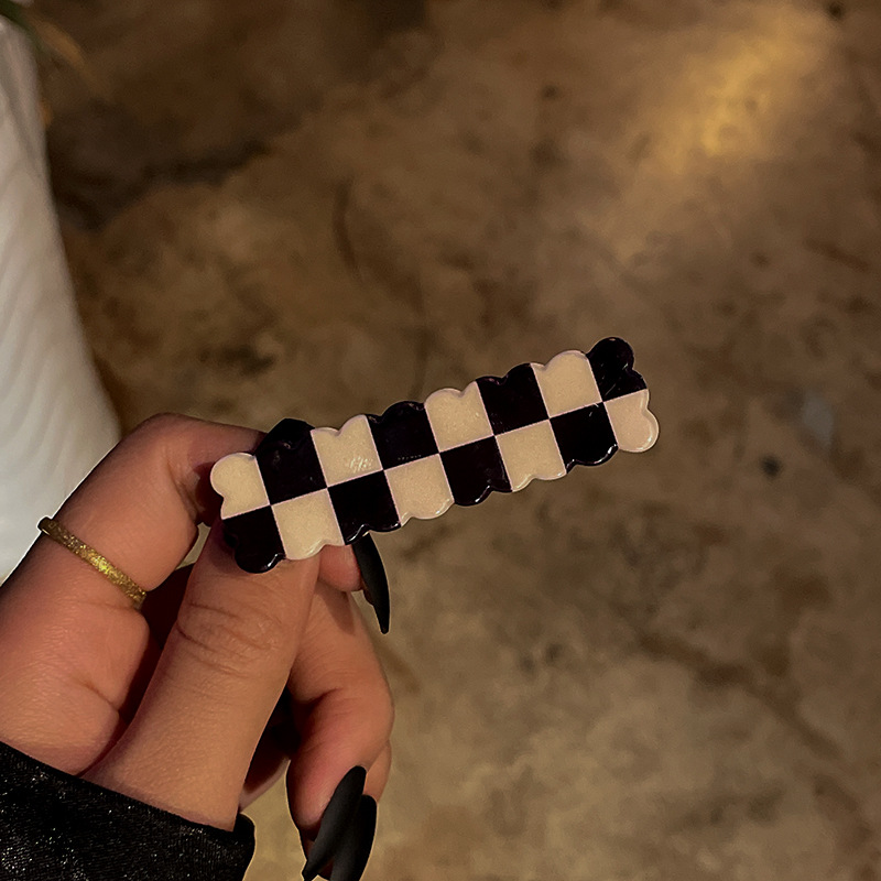 rectangular-black and white lattice pattern barrettes