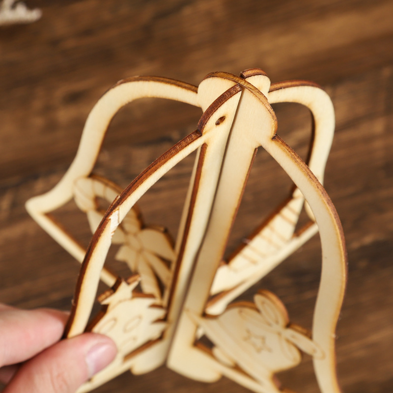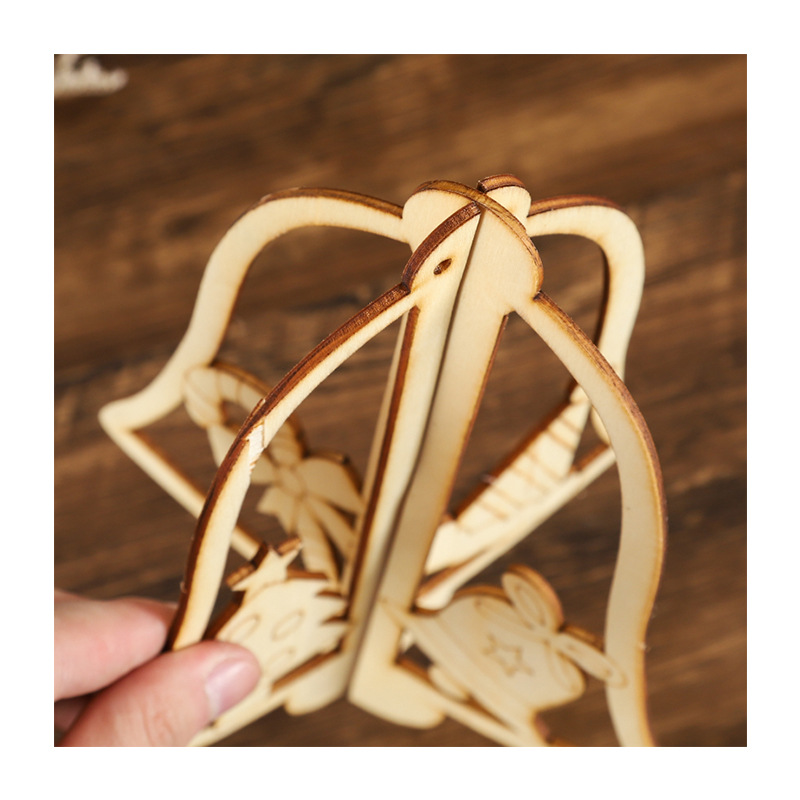 creative christmas bell wooden pendant factory direct supply laser engraving diy decorative small wood chips wholesale custom