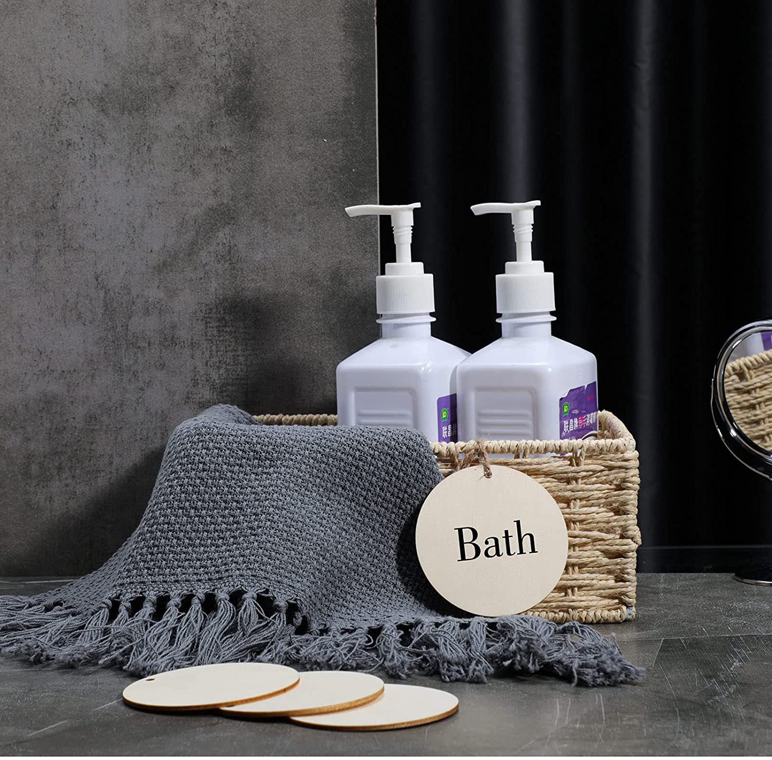 perforated round wooden board tag logo wood piece handwritten label laser engraving hollow out creative decoration auxiliary attachment