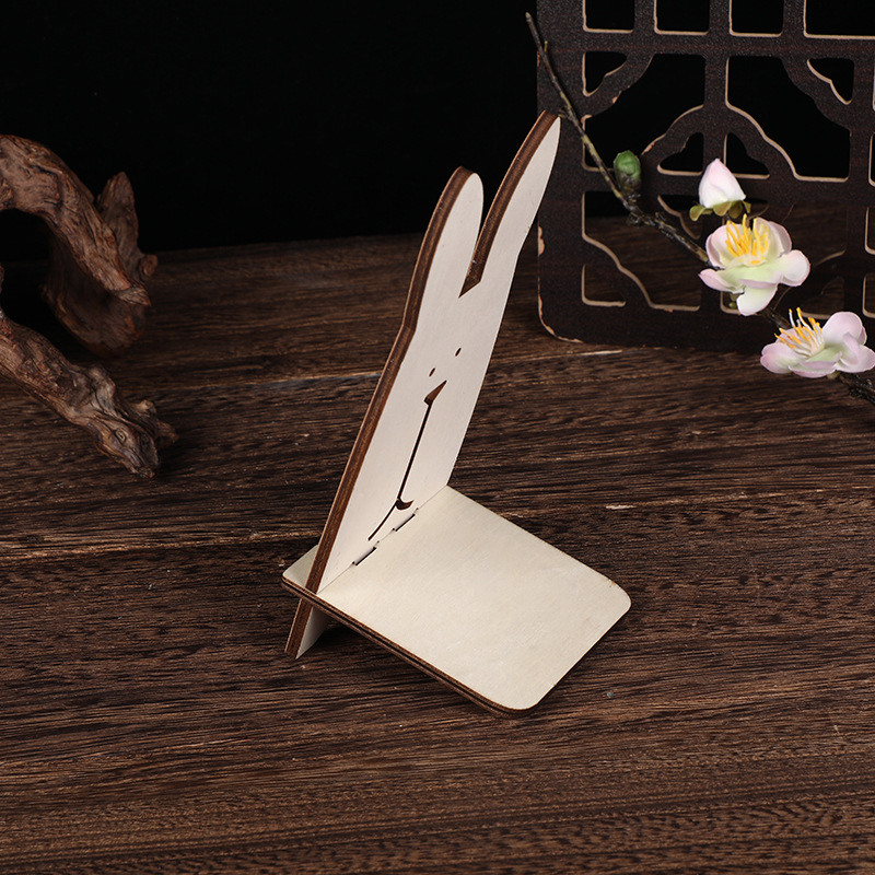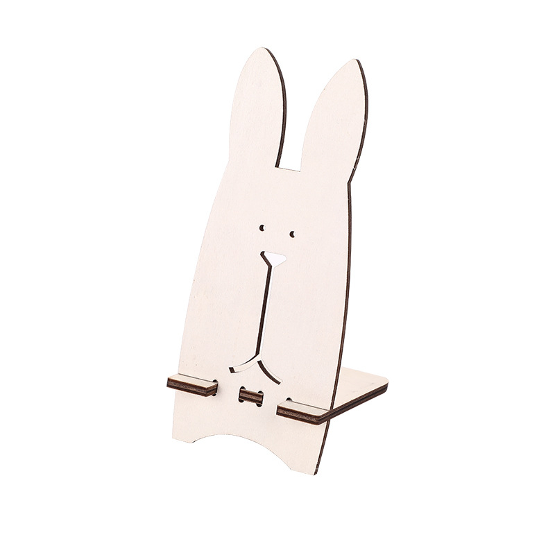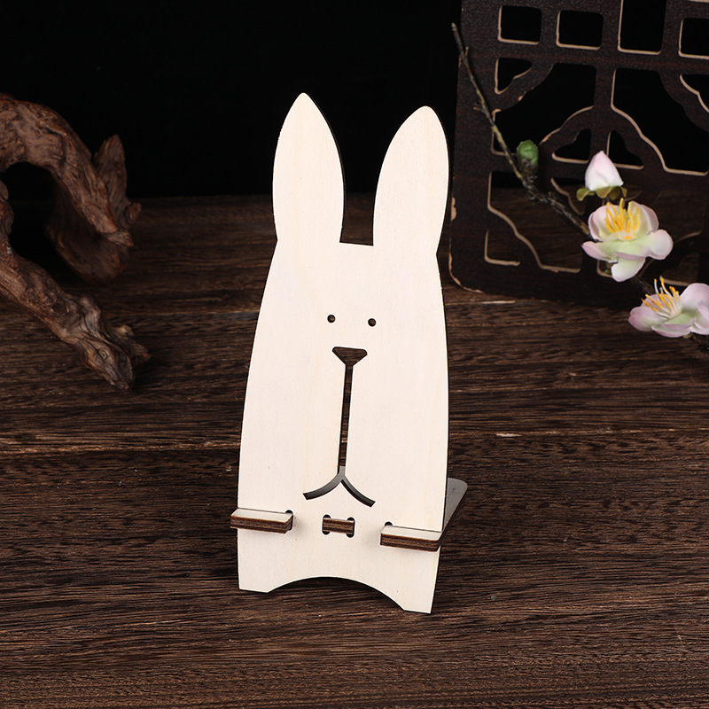 wooden usrvich mobile phone bracket wood piece painting rabbit cartoon solid wood mobile phone holder lazy bracket desktop decoration
