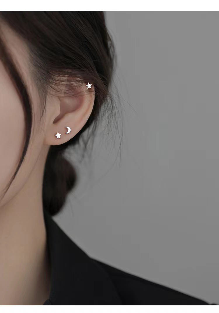 star and moon ear studs: s999 material (marking s999)