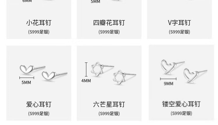 star ear studs: s999 material (marking s999)