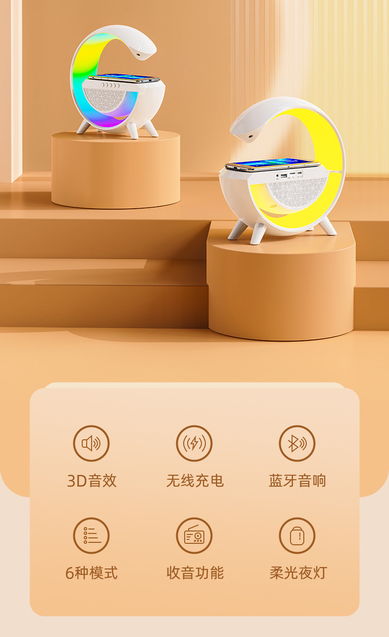 LED Atmosphere USB Night Light Home Bluetooth Speaker Subwoofer Cool Mini Portable Wireless Charging