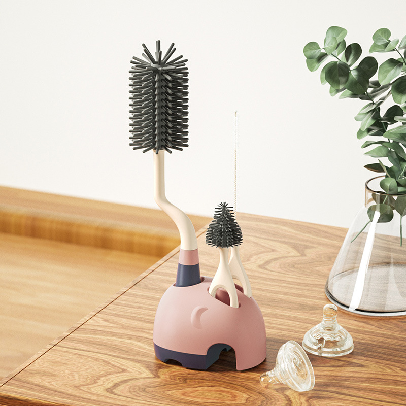 children's silicone baby bottle brush baby pacifier brush straw brush self-contained container cleaning brush kit baby rotating brush