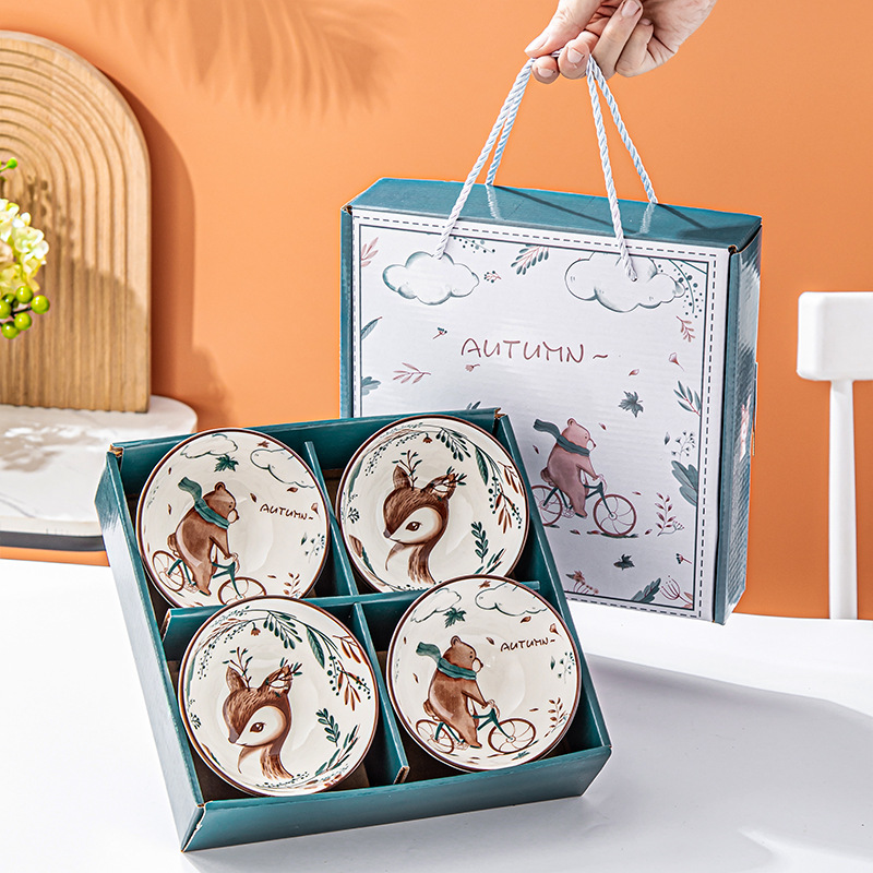 bear deer bowls and chopsticks suit: 4 bowls and chopsticks-gift box