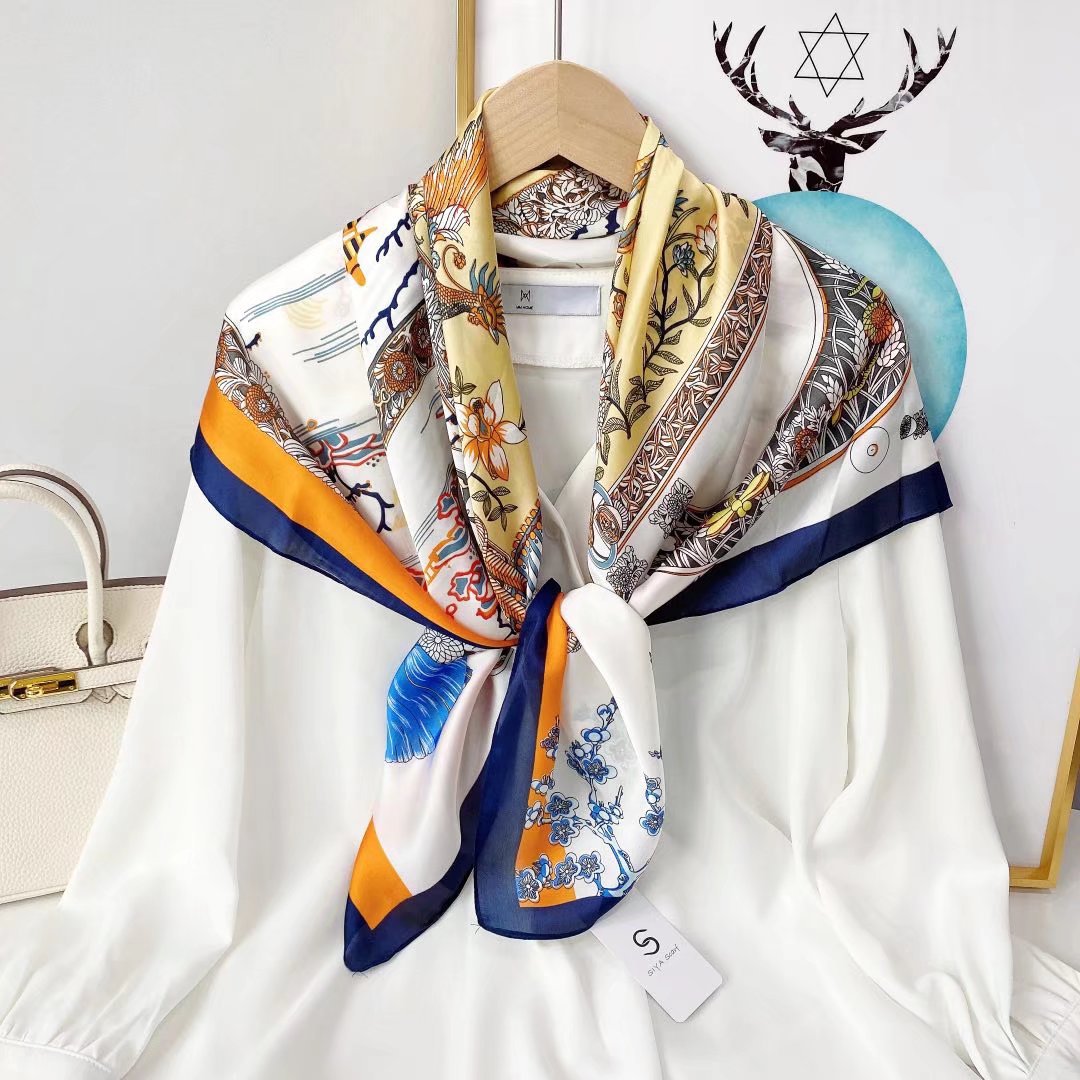 2022 New Style Silk Printed Scarf 90 Size Square Scarf Direct Factory Wholesale
