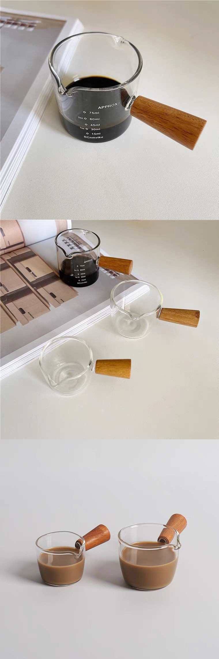 Glass Cup Coffee Cup Wooden Handle Small Milk Cup Glass Small Milk Boiling Pot Wooden Handle Milk Can Mini Seasoning Saucer Dish Appliance