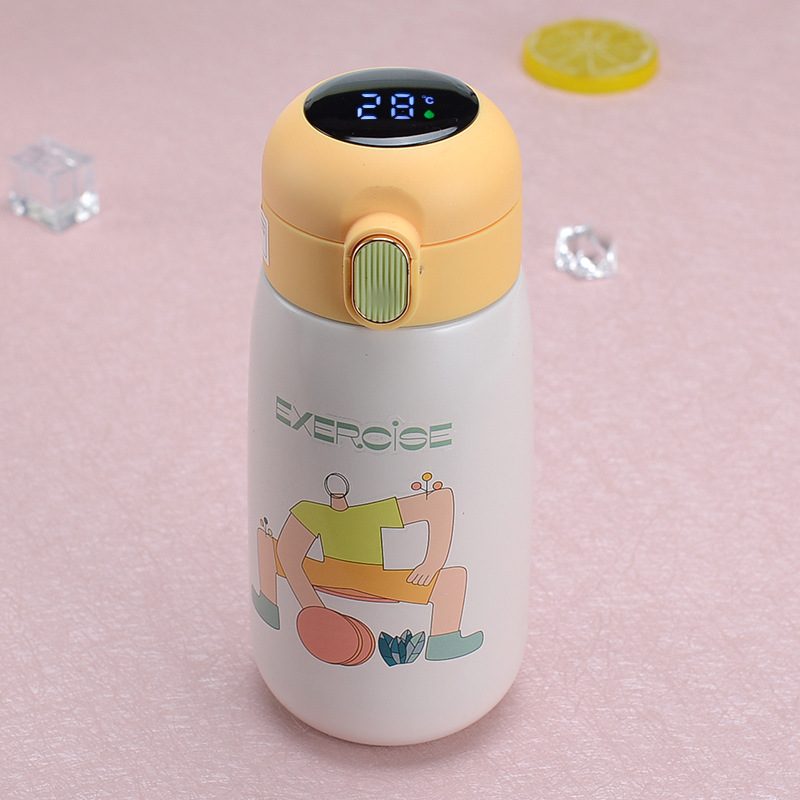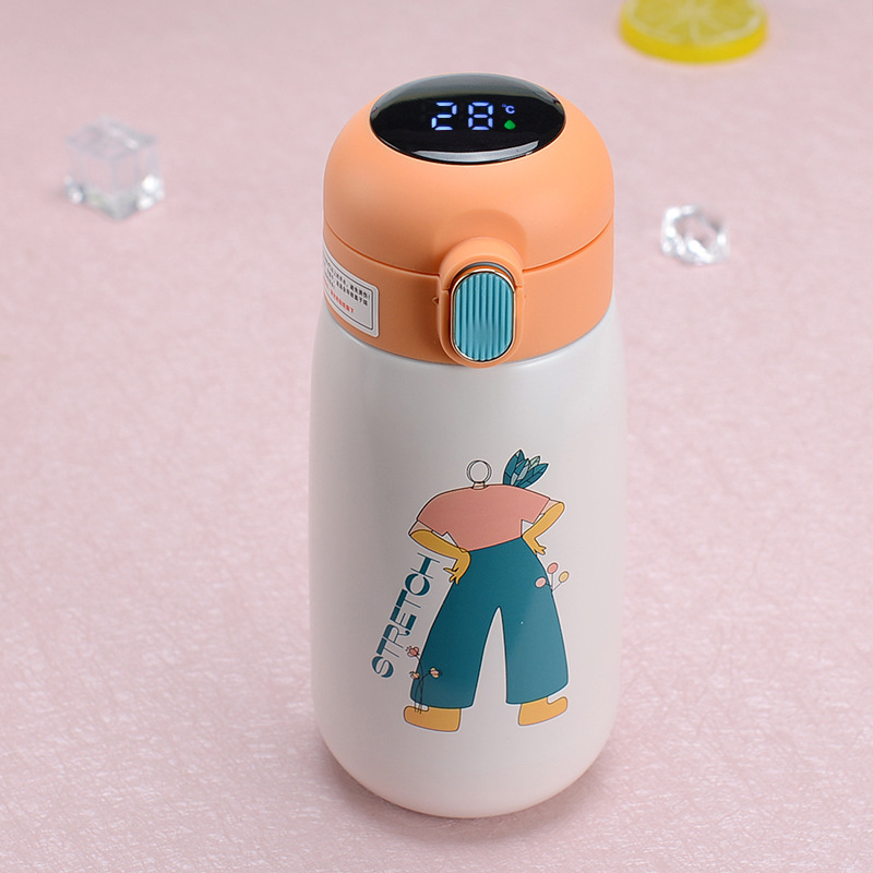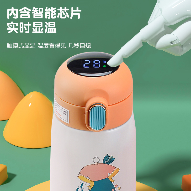 cartoon 316 stainless steel smart insulation cup led touch display temperature cup small fat pier children