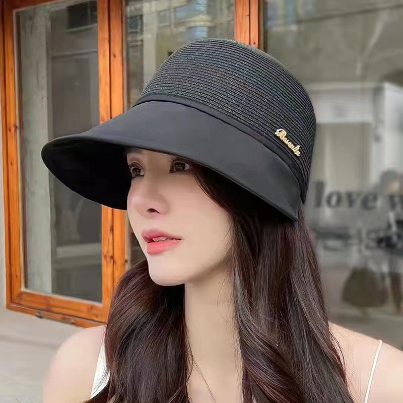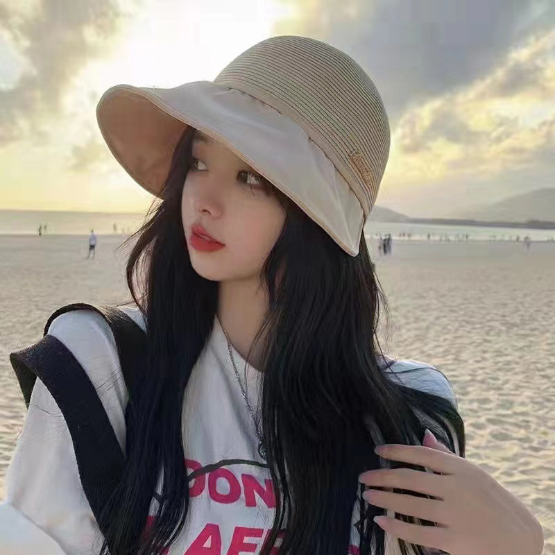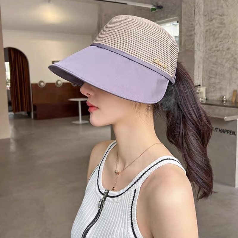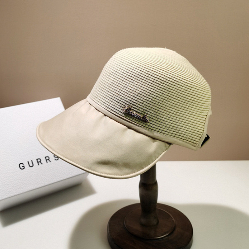 Korean Style Spring and Summer Stitching Sun Hat with Wide Brim Graceful and Fashionable Women's Peaked Cap Beach Trip Sun-Proof and Breathable Casual