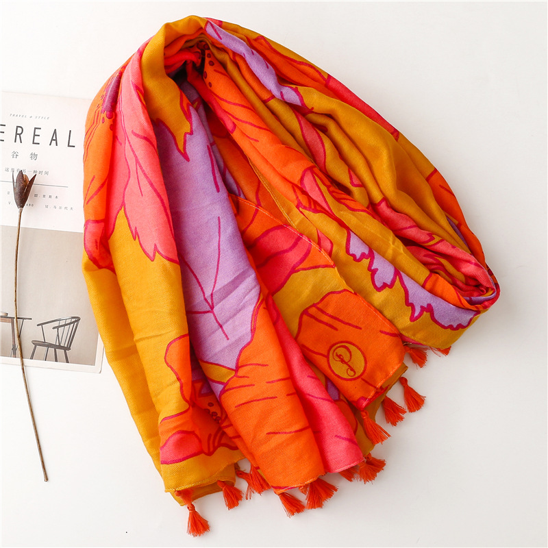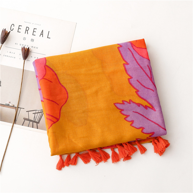soft cotton and linen scarf spring and summer vintage orange floral scarf travel sunscreen shawl scarf decoration 中文版