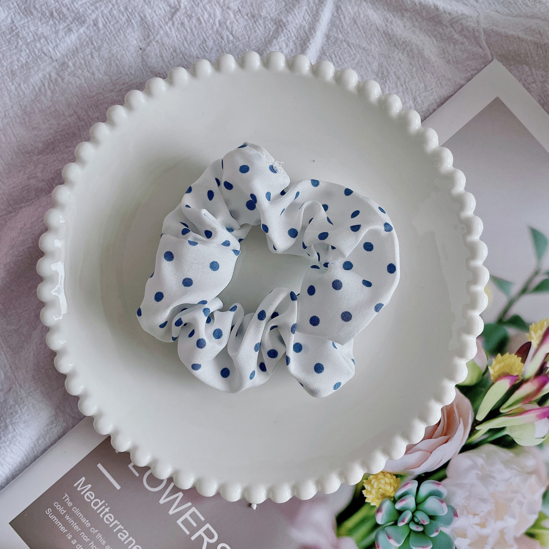 blue and white polka dot