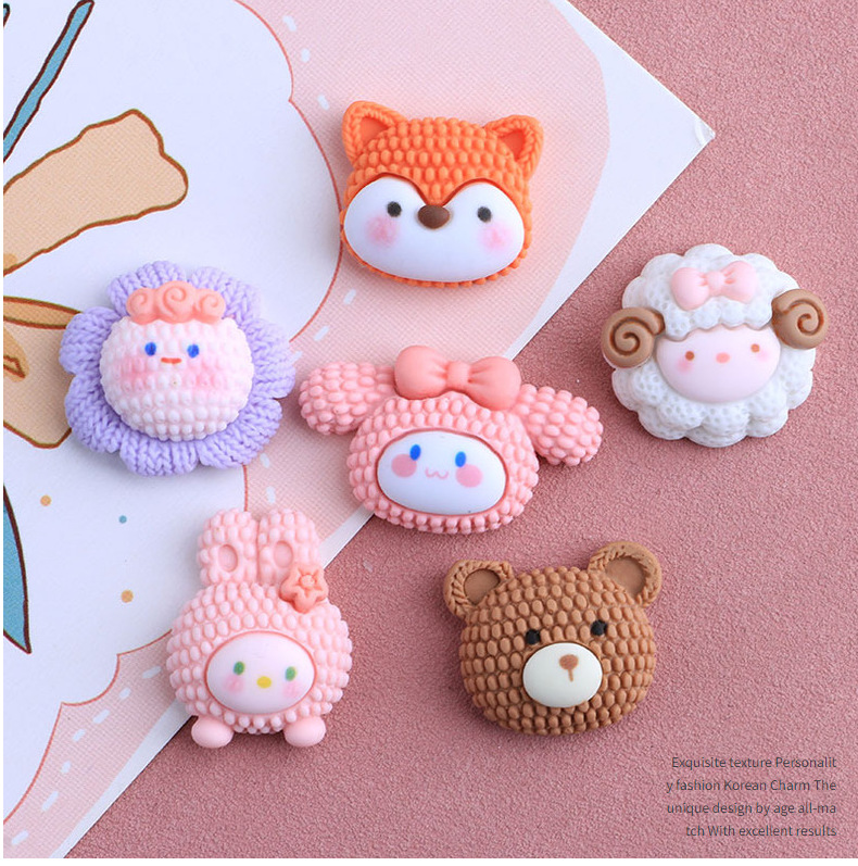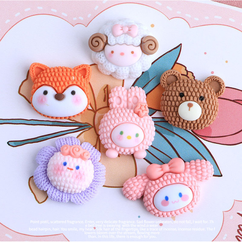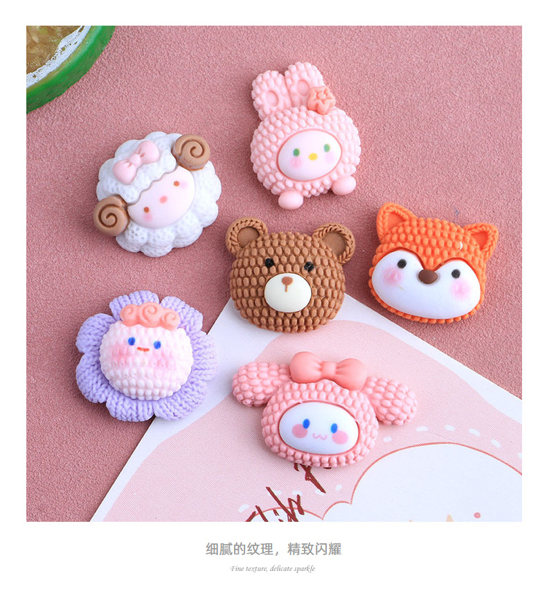 Imitation Knitted Cartoon Animal Head Series DIY Homemade Cream Glue Resin Accessories Wholesale Phone Case Table Decoration Barrettes