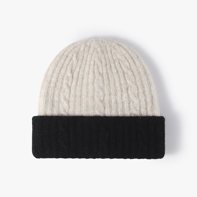 Knitted Hat Women's Winter Outdoors Double Layer Warm Thickened Earflaps Beanie Hat Fashion Jacquard Colorblock All-Matching Wool Hat