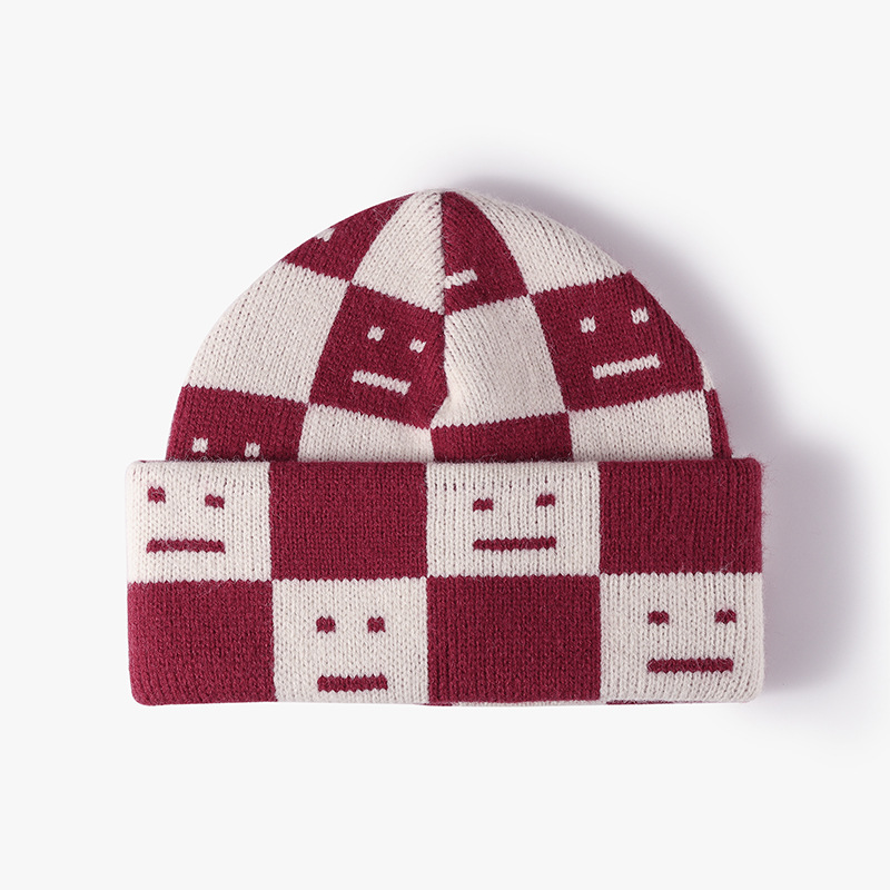 Street Large Hat Circumference Autumn-Winter Warm and Thickening Knitted Hat Female Fashion Ear Protection Beanie Hat Expression Jacquard Woolen Cap Wholesale