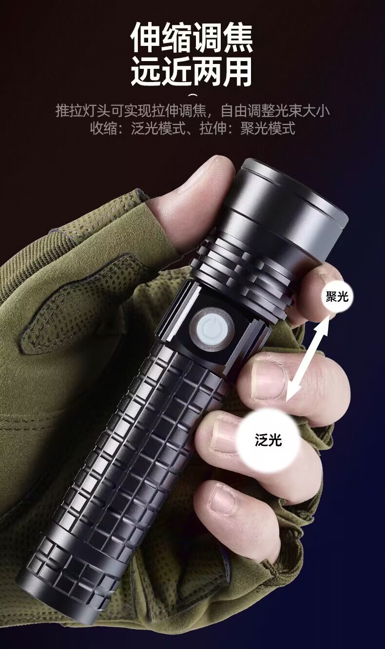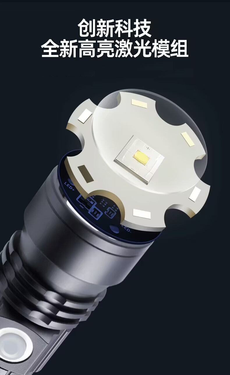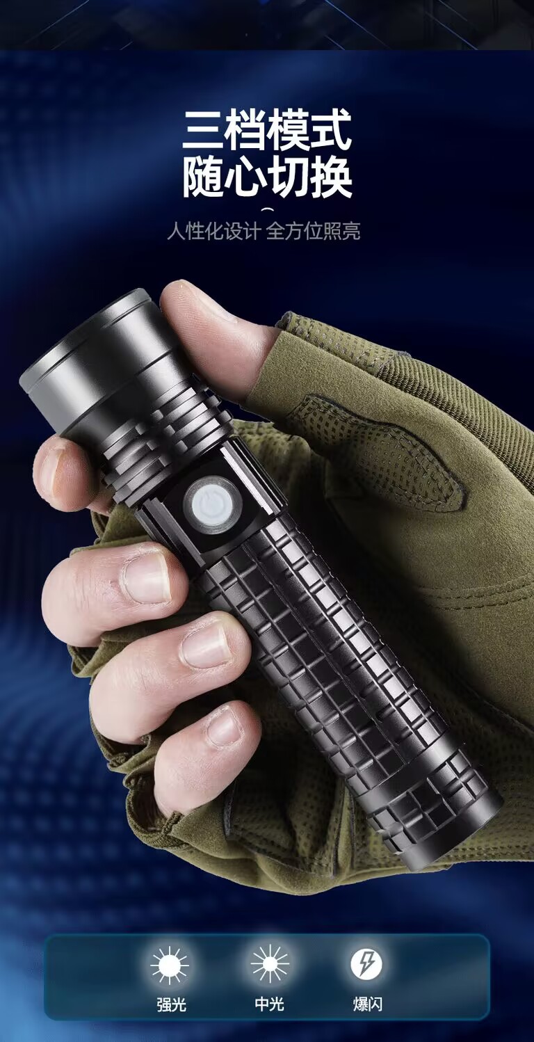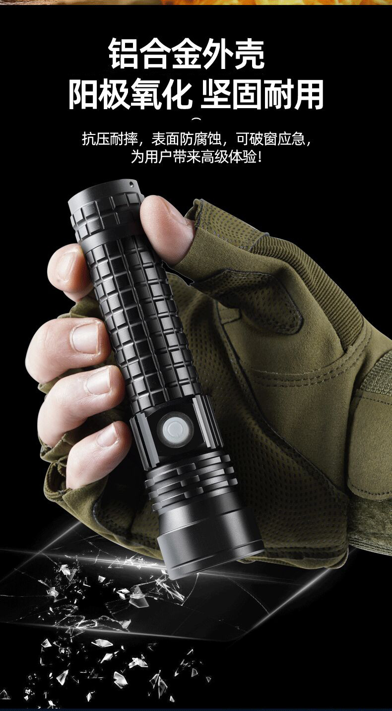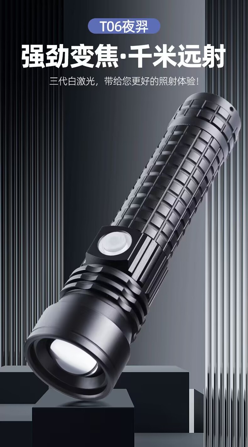 Cross-Border White Laser Long Shot Flashlight Telescopic Zoom Typ-C Chargable Lithium Battery Flashlight Tube Led Aluminum Alloy Flashlight
