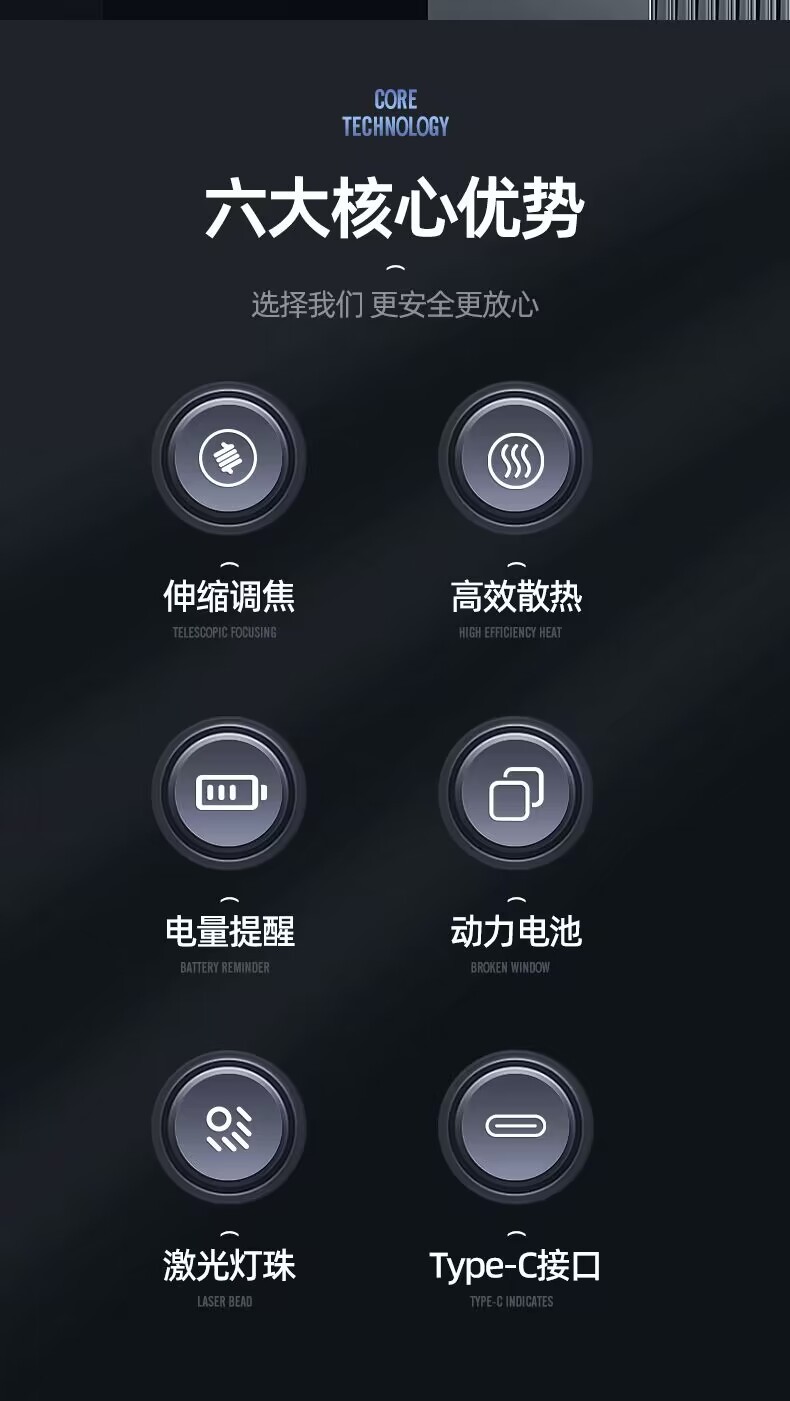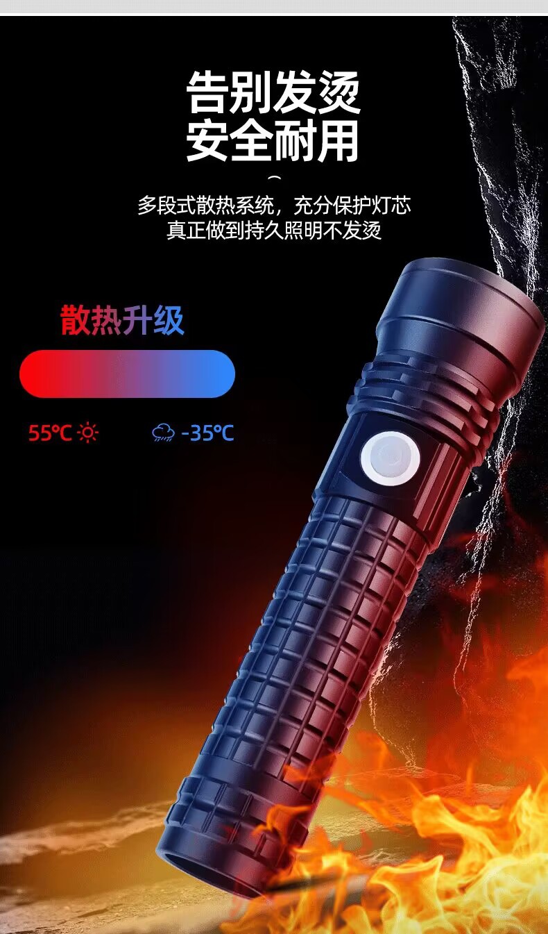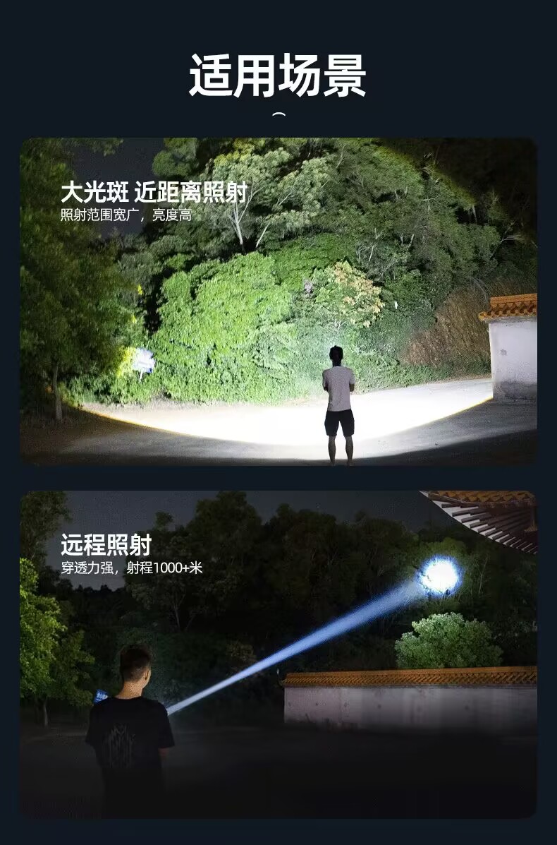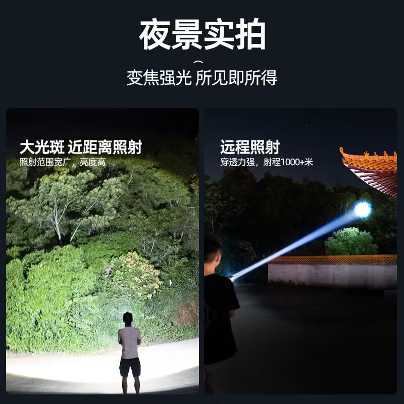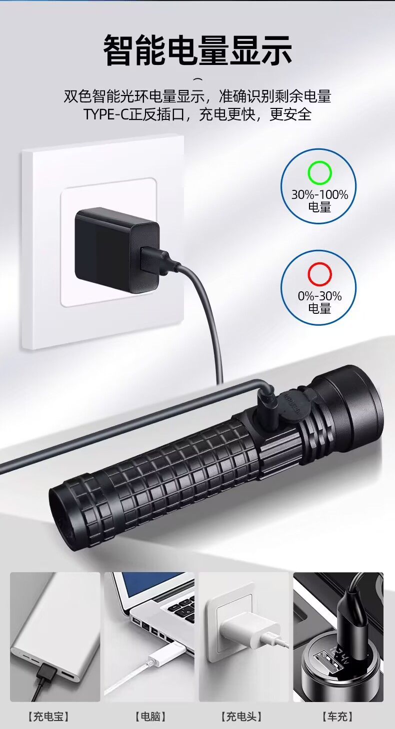Cross-Border White Laser Long Shot Flashlight Telescopic Zoom Typ-C Chargable Lithium Battery Flashlight Tube Led Aluminum Alloy Flashlight