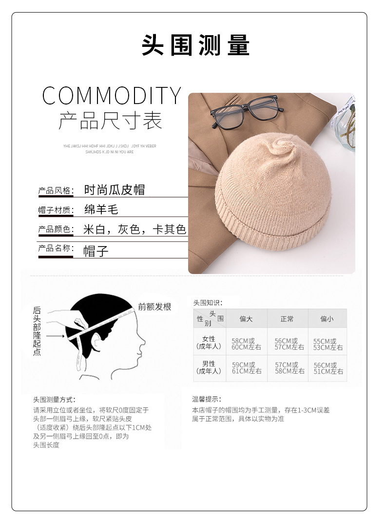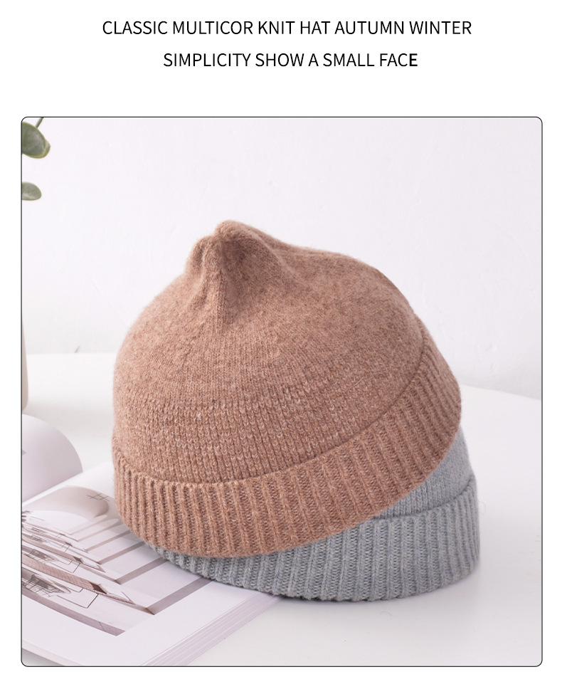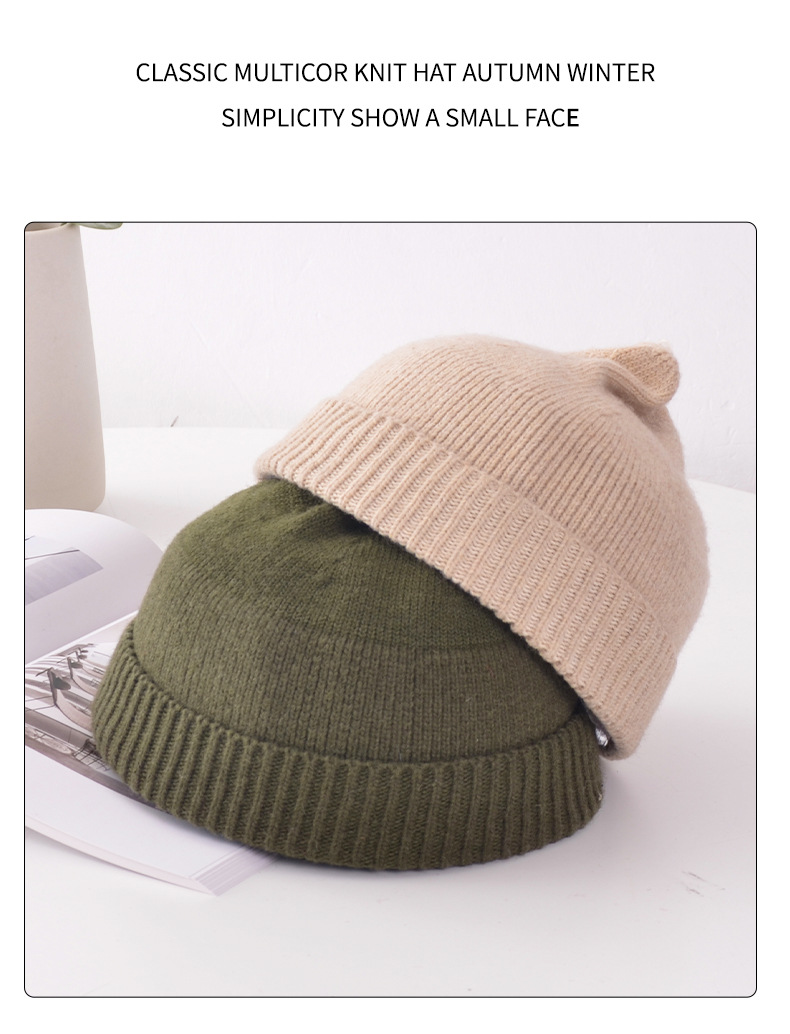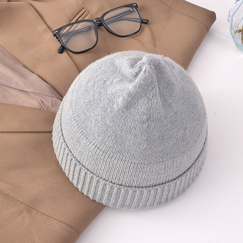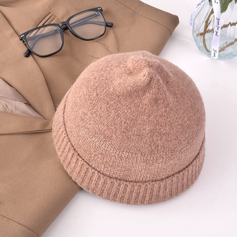 Skullcap Women's Korean-Style Autumn and Winter Landlord Knitted Hat Student Wool Woolen Cap Women's Warm Brimless Beanie Hat
