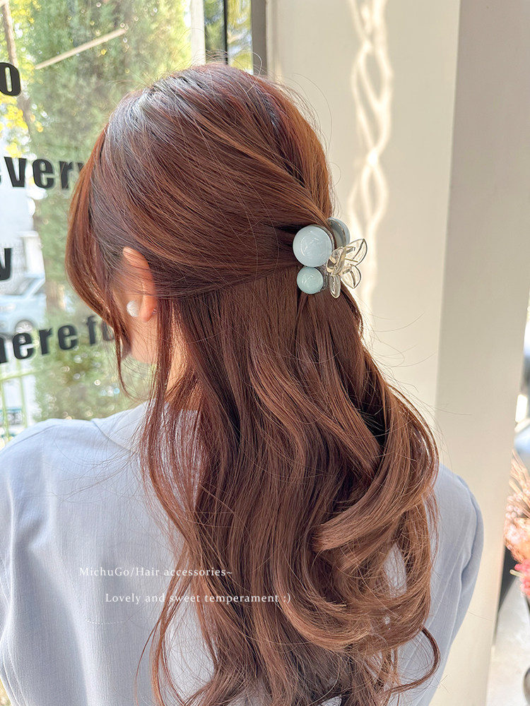 elegant blue pearl grip women's spring back head updo shark gap former red 2023 new hair pin headdress