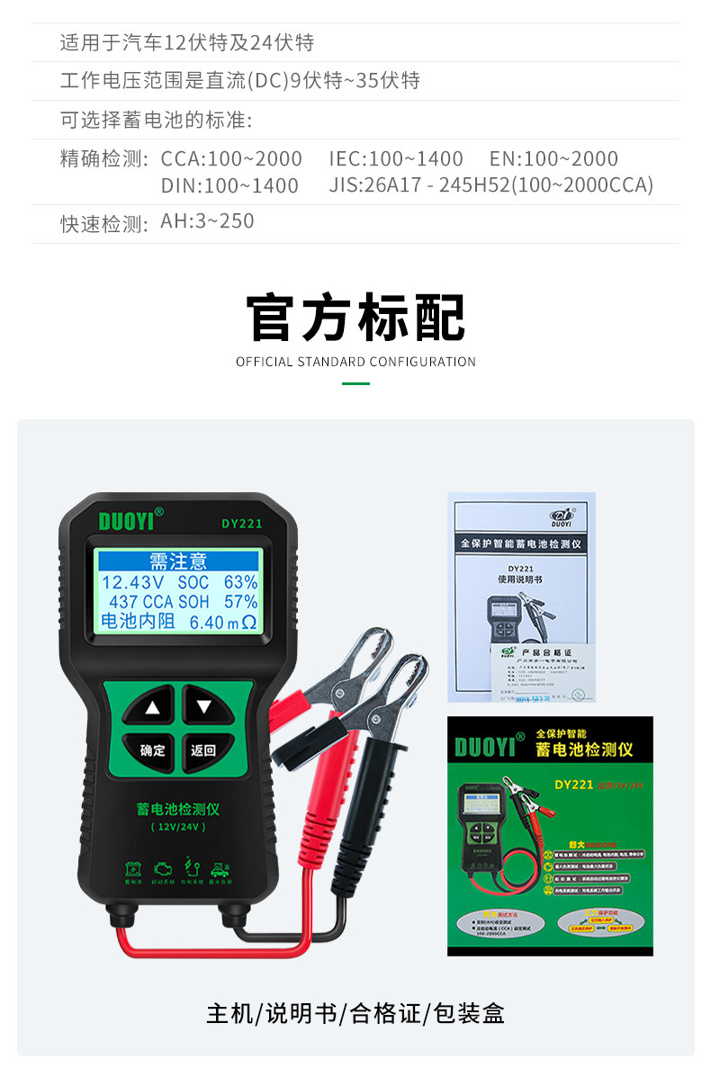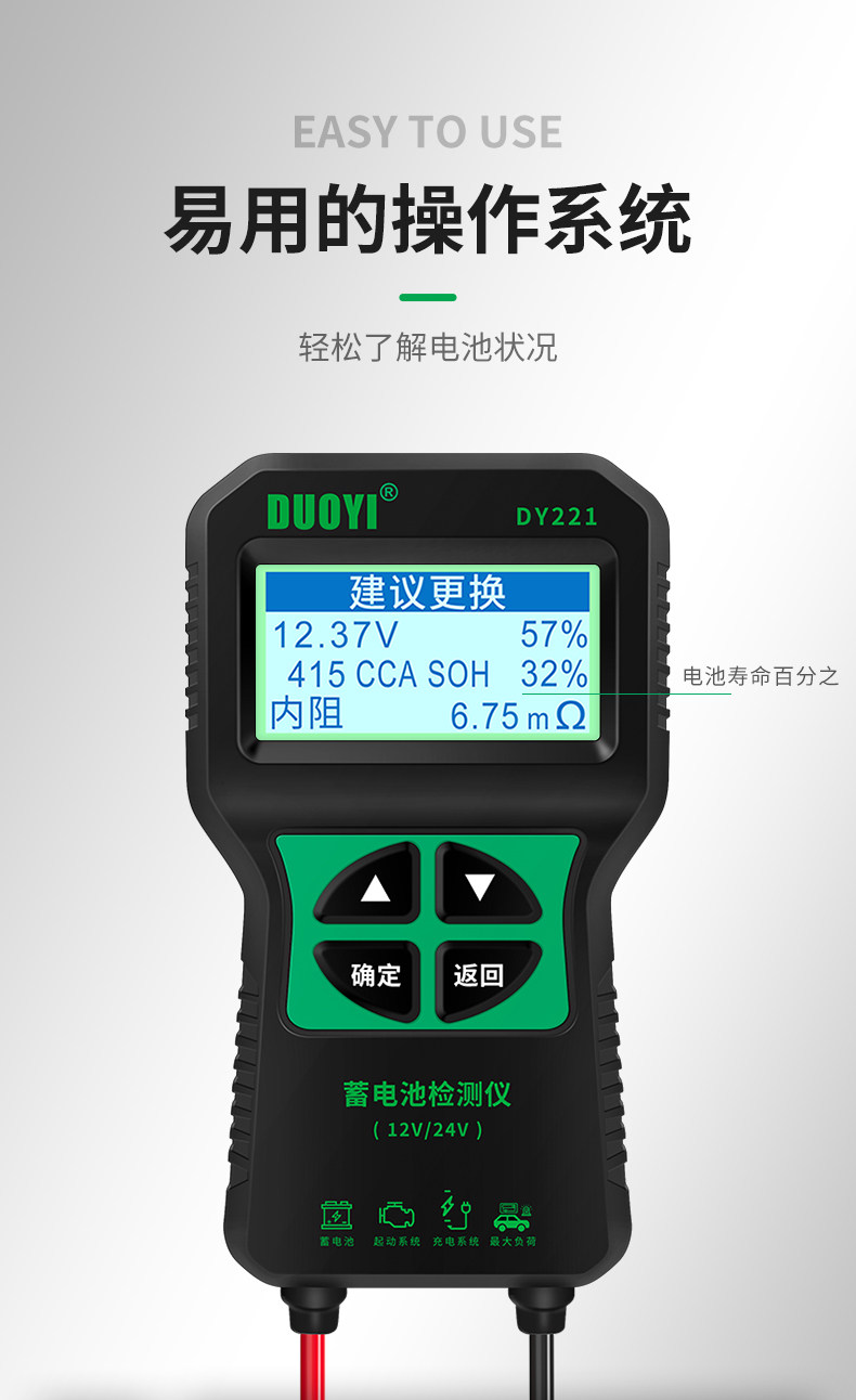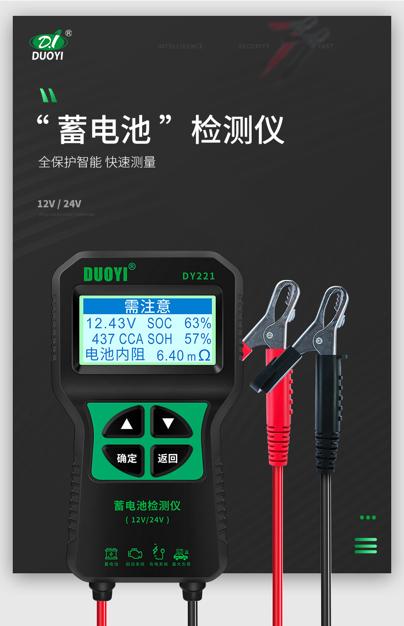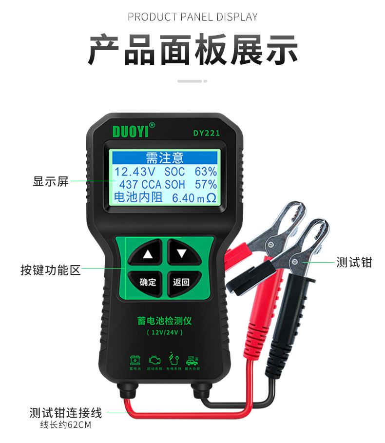 Dy221 Battery Detector Car Battery Detector Battery Life Battery Tester Internal Resistance