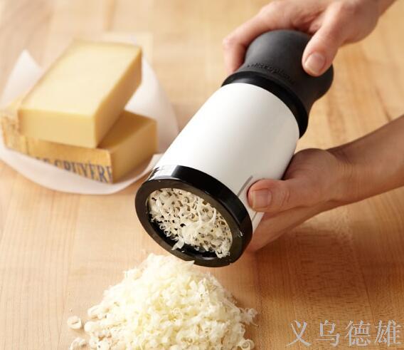 This Cheese Mill makes a wonderful addition to your dinner table and is a wonderful helper in the kitchen when preparing casseroles or lasagnas. Designed to grate large amounts of hard cheese, this rotary cheese grater can hold a large amount in the body and downward push, and a simple twist of the top grates cheese easily and effectively.Two interchangeable blades allow you to choose the consistency of the cheese so you can grate it into fine or coarse pieces. Designed with a soft-touch handle for comfort and a lid for convenient storage of the blades. Instructions are included. All components are dishwasher safe for a quick and easy cleanup.This kitchen aid is designed for use on hard cheeses such as Parmesan, Swiss, and Romano.
