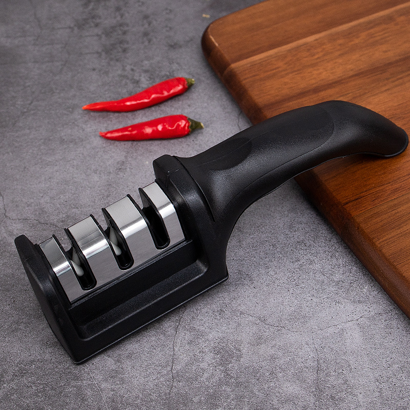 All Black Integrated Sharpener Multi-Functional Sharpening Stone Kitchen Tools Sharpening Steel Stall Sharpener