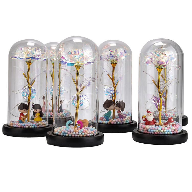 black low glass cover colored gold rose colorful color + three-leaf colored lights
