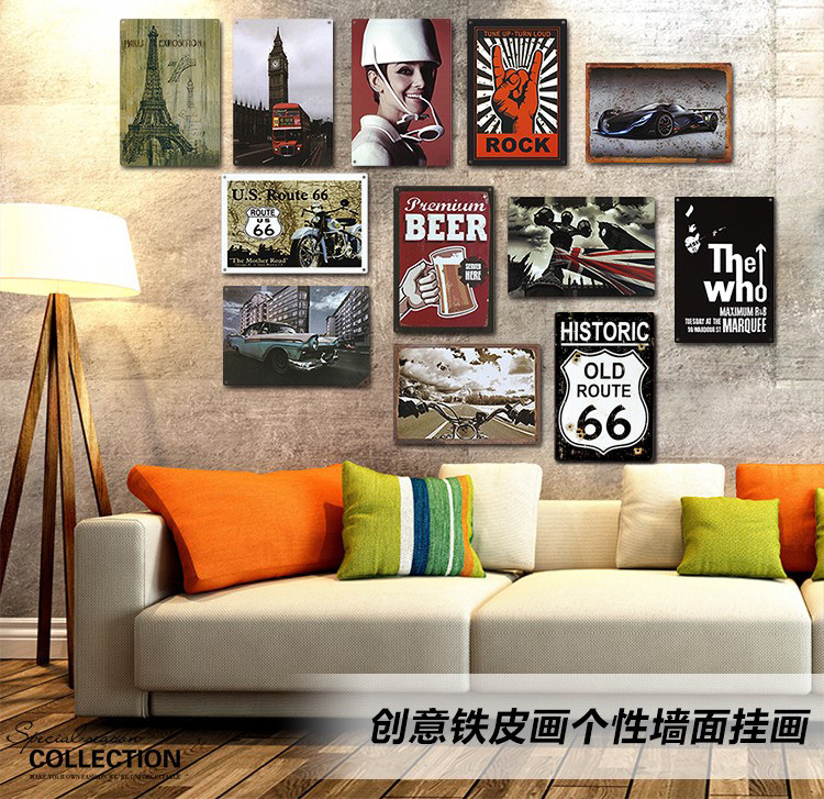 industrial style retro nostalgic iron skin painting license plate bar barber shop bedroom wall decoration pendant wall painting creative