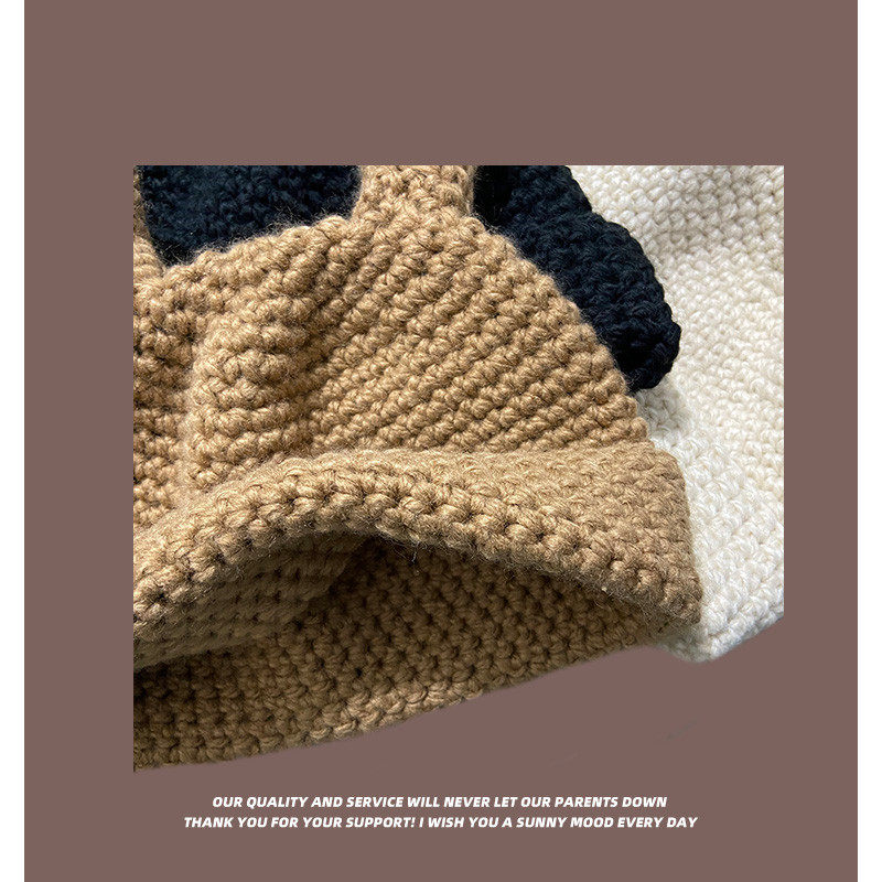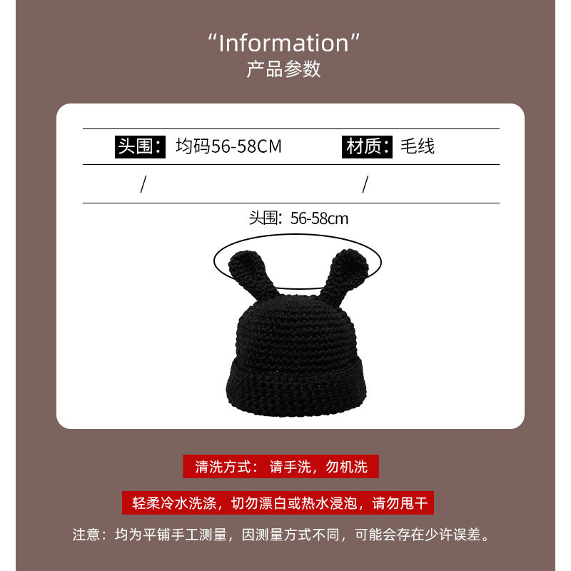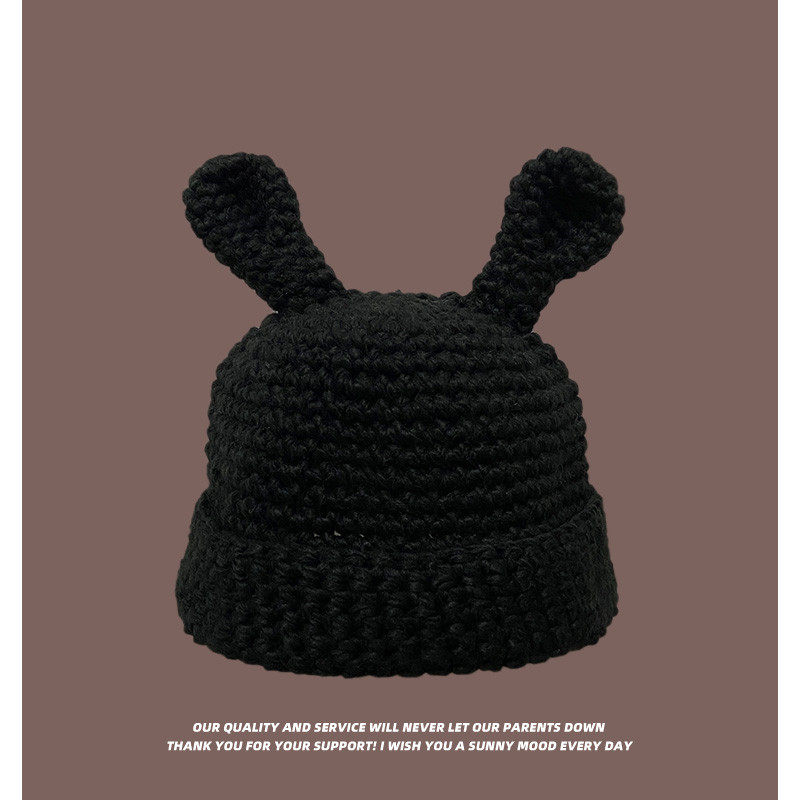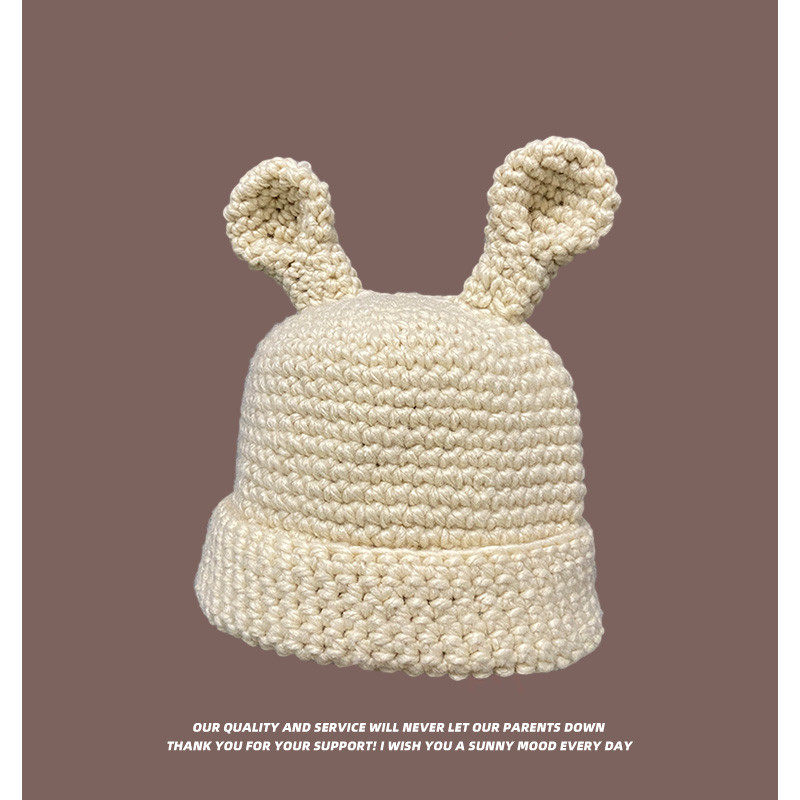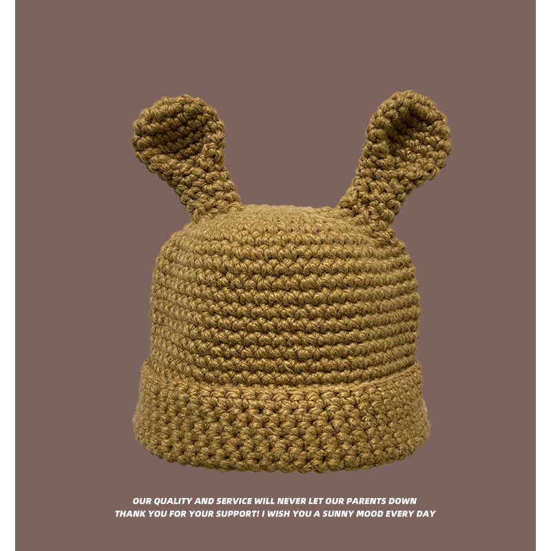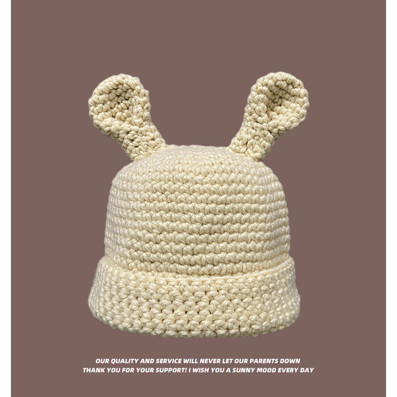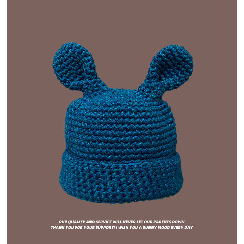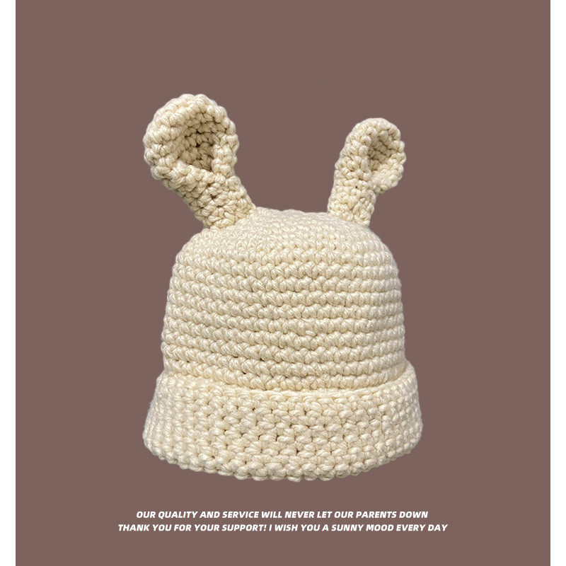 Coarse Yarn Knitted Net Red Funny Cute Sister Selling Cute Ear Wool Cap Female Autumn and Winter Thermal Head Cover Knitted Hat