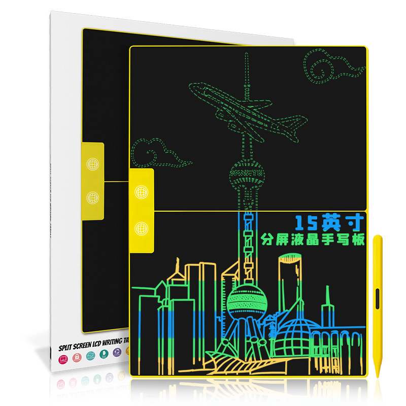 New 15-Inch Split Screen LCD Handwriting Board Children Learning Drawing Board Electronic Scribbling Pad Color Writing Small Blackboard