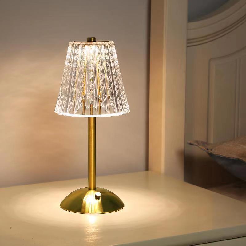 factory direct supply retro crystal table lamp charging touch three-color electrodeless dimming led bedside bedroom atmosphere lamp