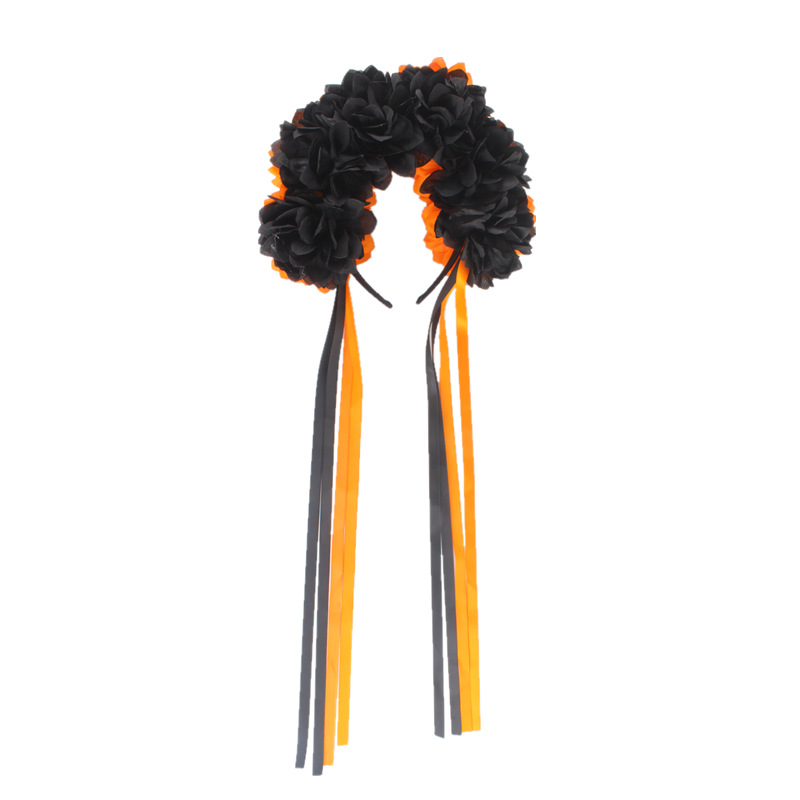 Material: Polyester fabric, black full-cover wide hairband with satin ribbon.