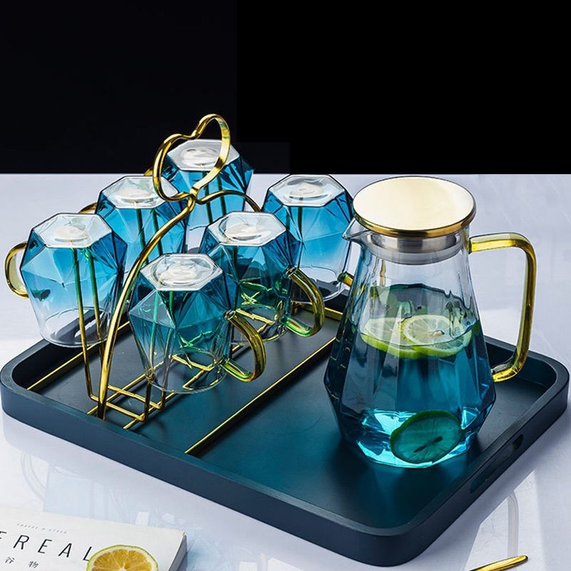Blue One Pot 6 Cups Blue Tray Golden Cup Holder