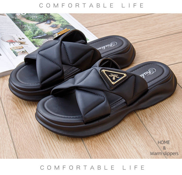 Women's Summer Outdoor Thick-Soled Korean Style Fashionable Super Soft Student Slippers Interior Home Women's Sandals