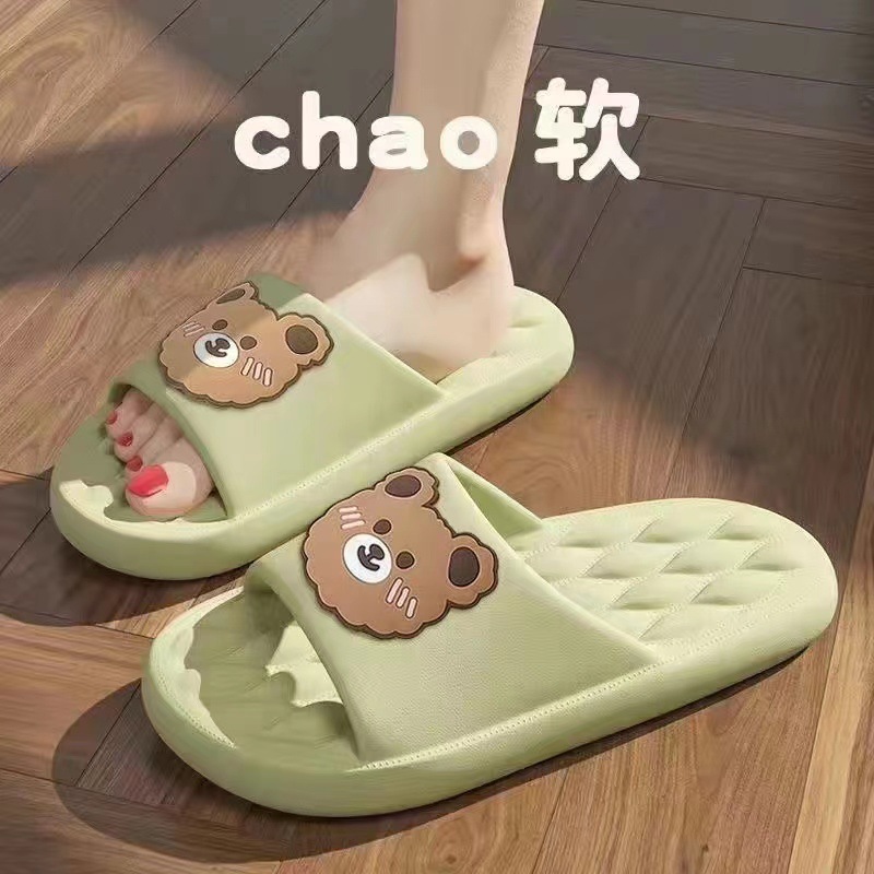 Slip-on Slippers for Women Summer Indoor and Outdoor a Man and a Woman Cute Bear Couple Home Non-Slip Bathroom Slippers