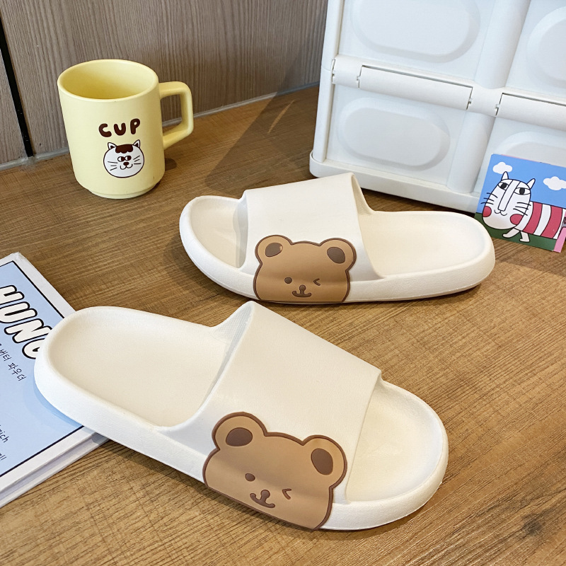 Women's Slippers Summer Hot Internet Celebrity Bear Poop Feeling Thick Bottom Cute Edge Bear Couple Household Outer Wear Soft Bottom Slippers