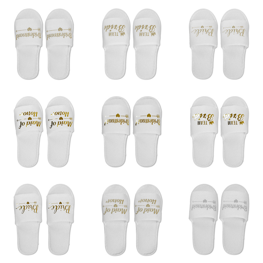 Wedding Pajamas Party Slippers Hotel Room Disposable Supplies Bride English Letters Glossy Font Shoes