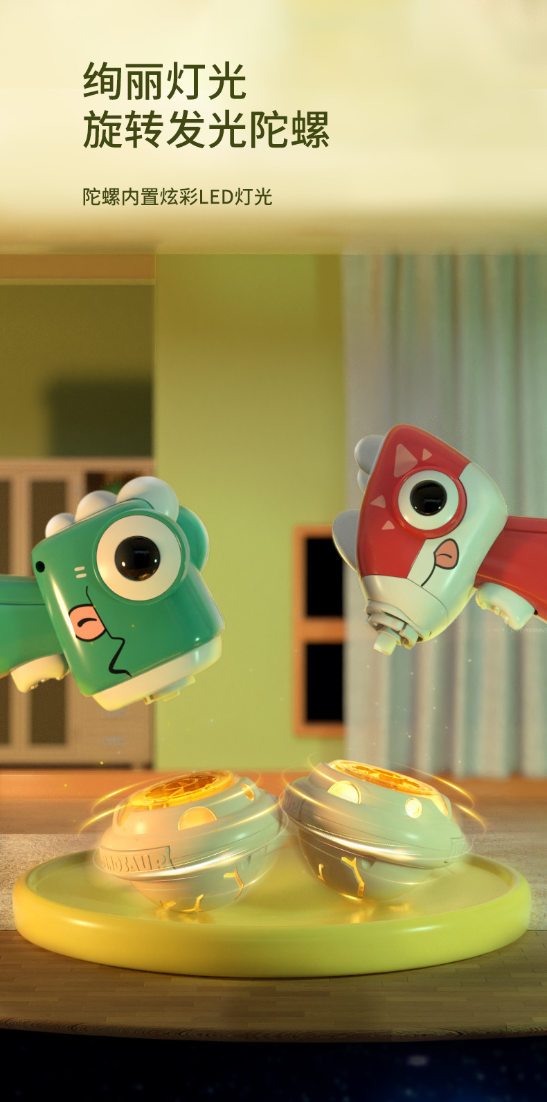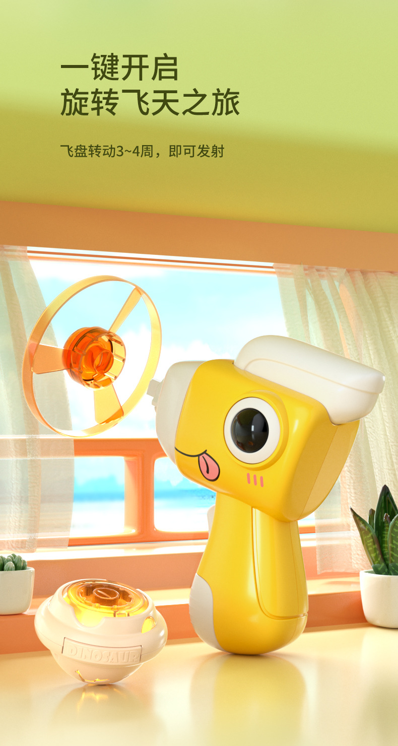 Cross-Border Cartoon Dinosaur Gyro Luminous UFO Rotating Launch Helicopter Shooter Frisbee with Light Boy Stall Toy