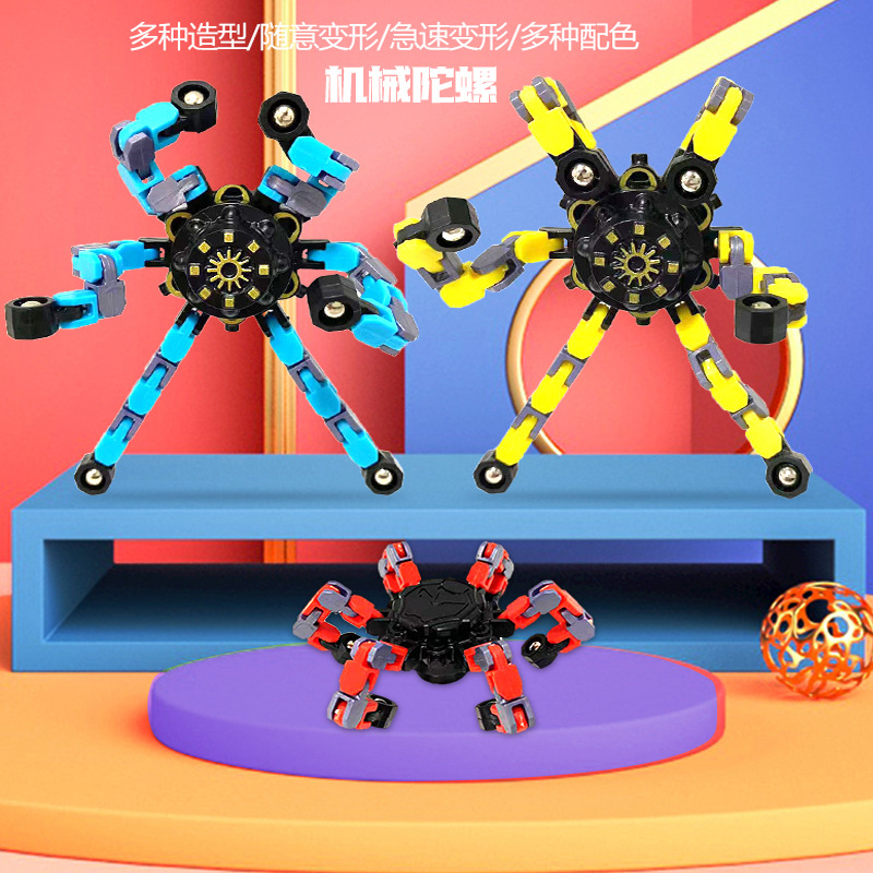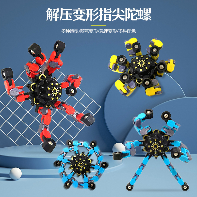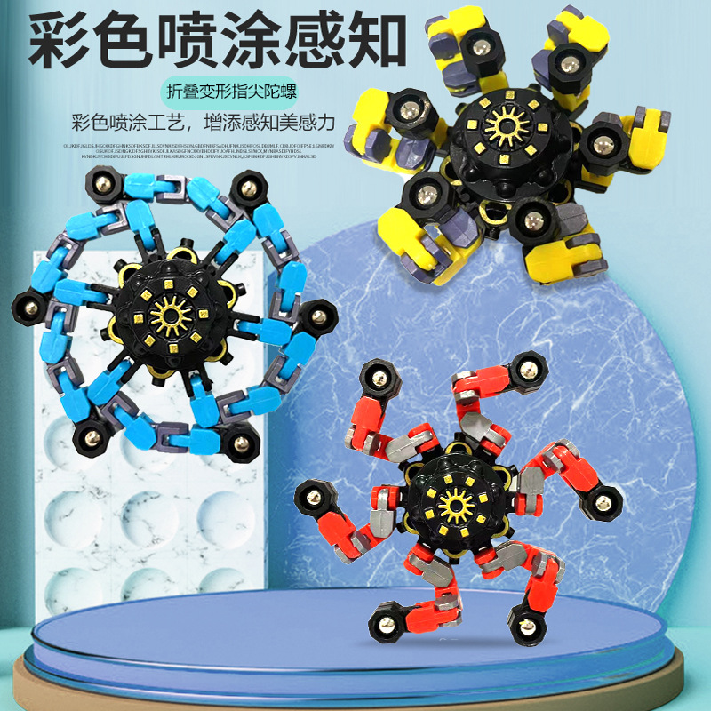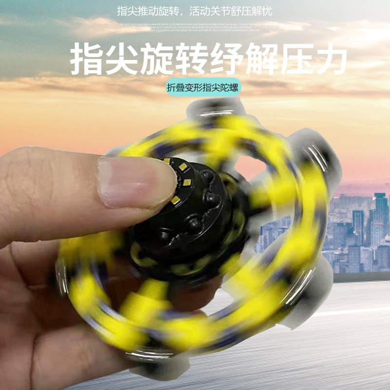 Tiktok Fingertip Mechanical Cross-Border Decompression Children's Mechanical Deformation Gyro Luminous Fingertip Spinner Fingertip Chain Toy