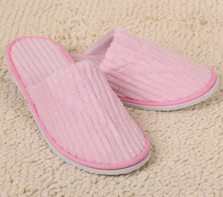 Home Hospitality Strip Coral Velvet Slippers Hotel Bed & Breakfast Room Disposable Slippers in Stock Wholesale