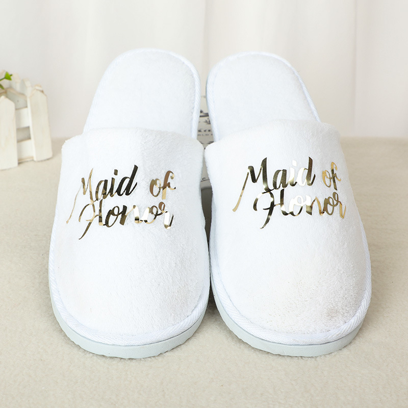 The Wedding Party Non-Slip Slippers Gilding Letters Bride and Bridesmaid Slippers Women's Wedding Hotel Thickened Cotton Cotton Slippers