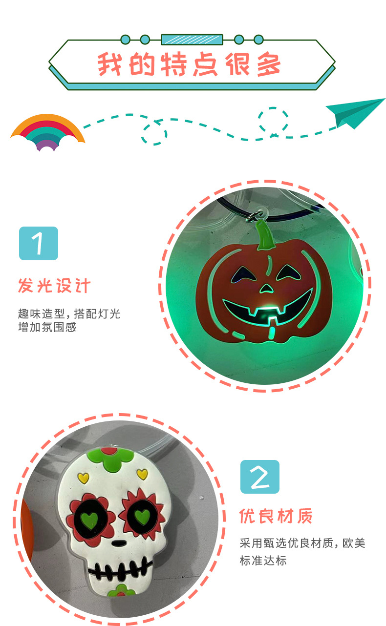 Ghost Festival Halloween Necklace Luminous Bracelet Necklace Flash Children Dress up Ornament Activity Props Toys Wholesale
