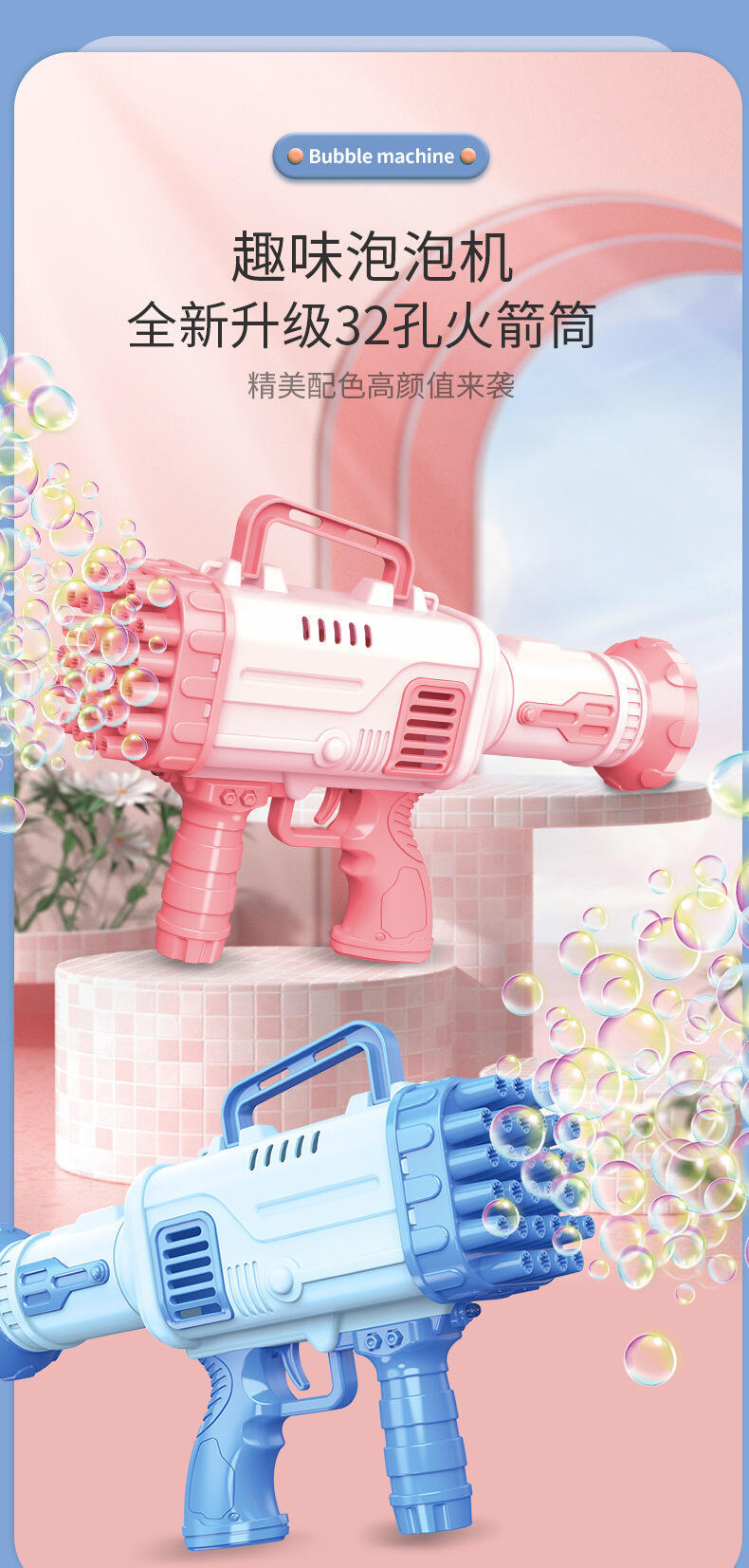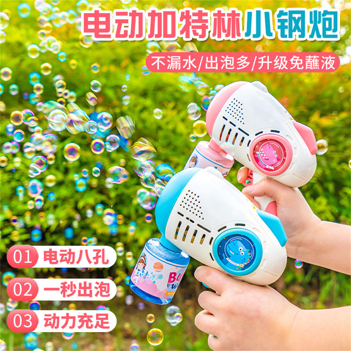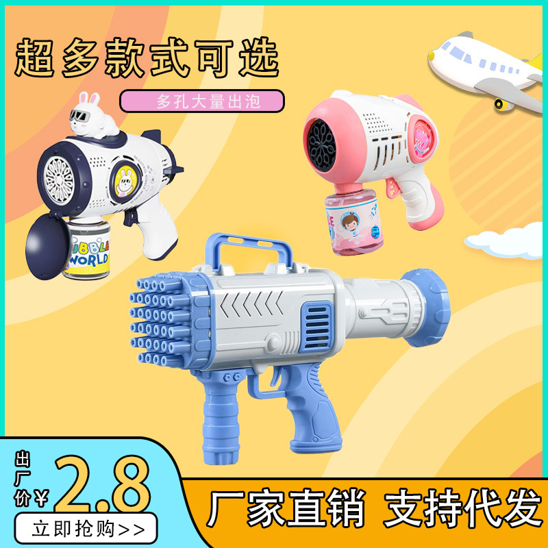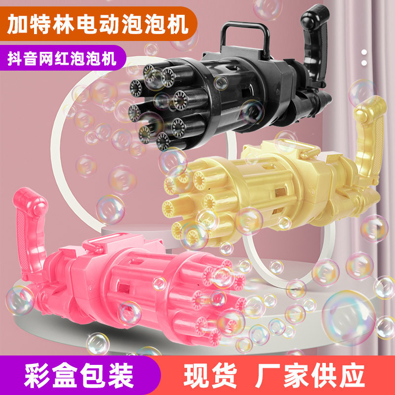 Tiktok's Same Porous Luminous Electric Bubble Maker Children's Hand-Held Gatling Bubble Blowing Gun Stall Toys Wholesale