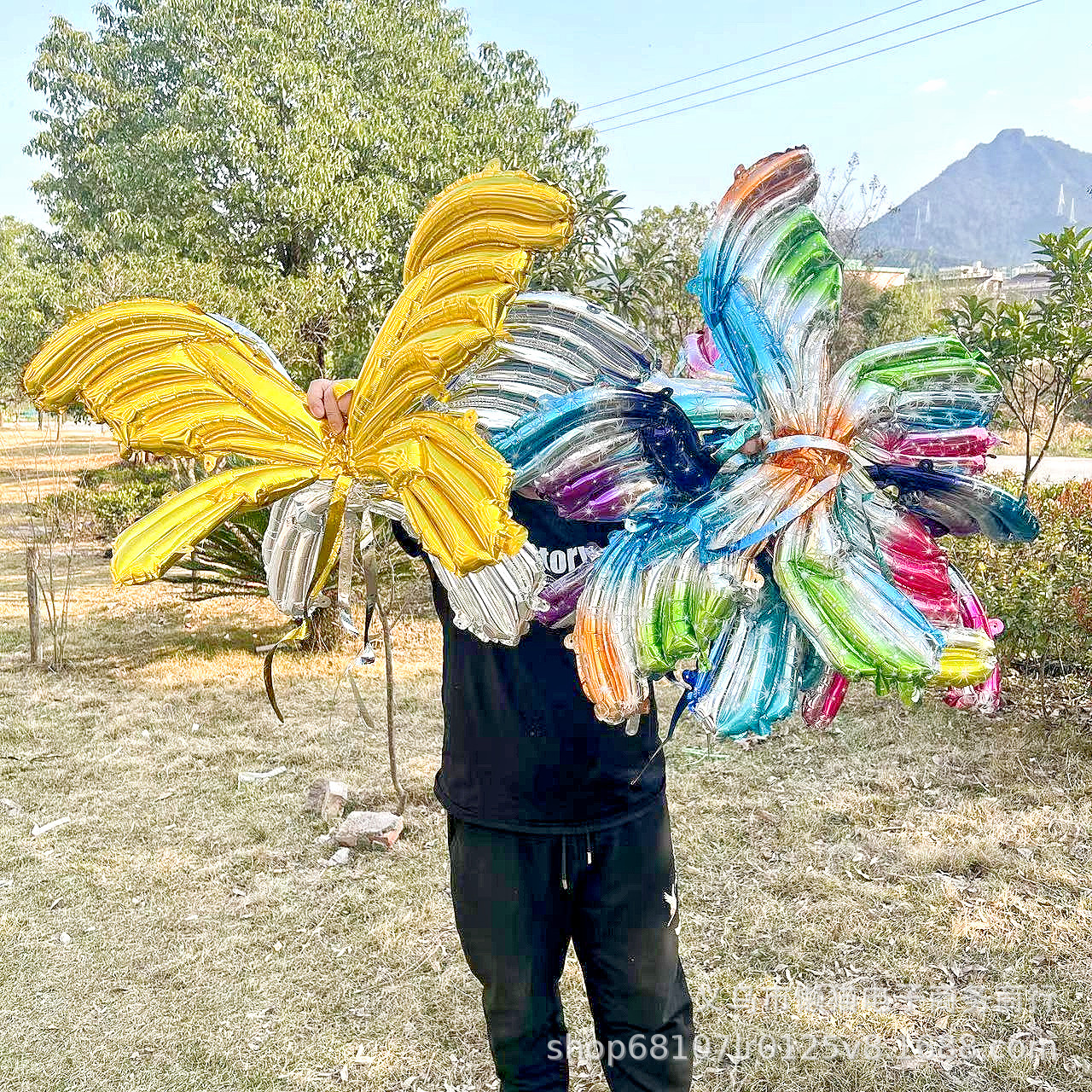 Net Red Butterfly Wings Inflatable Macaron Colorful Angel Back-Mounted Children's Aluminum Film Nylon Stall Toy Luminous