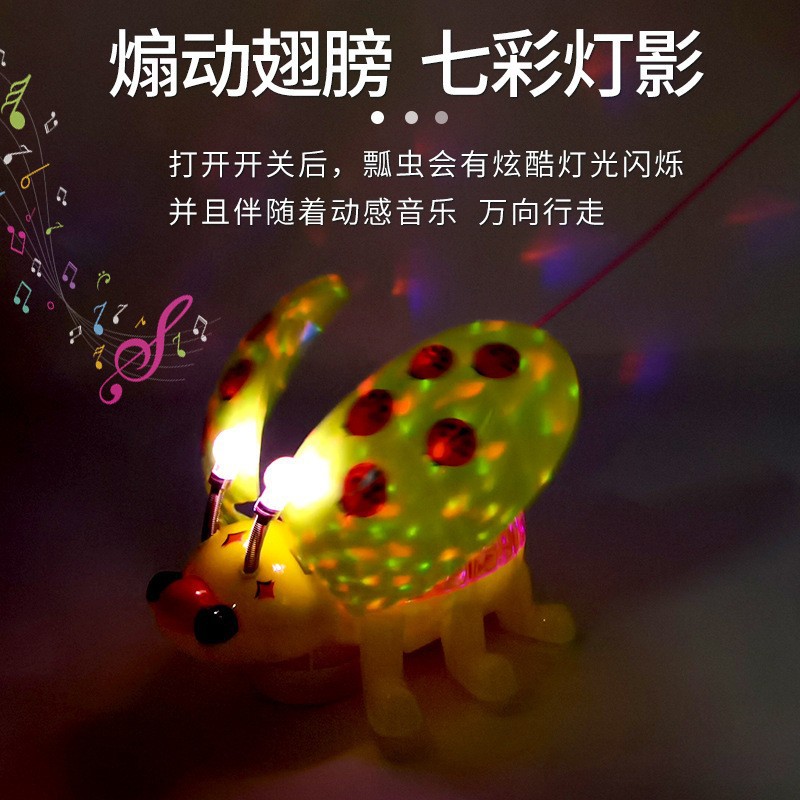 New Electric Rope Ladybug Universal Flash LADYBIRD Toy Will Walking and Singing Beetle Luminous Toy