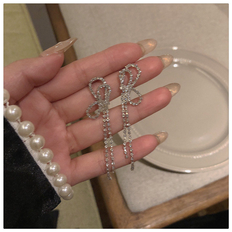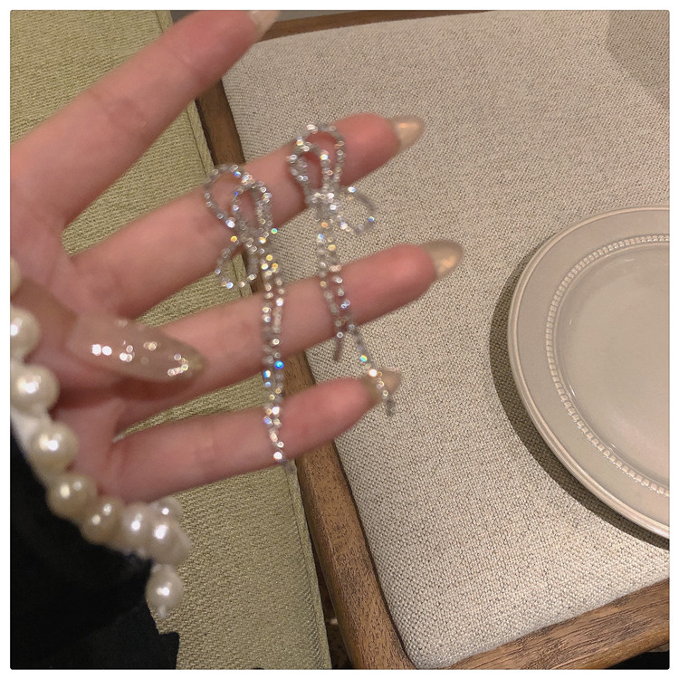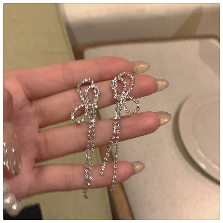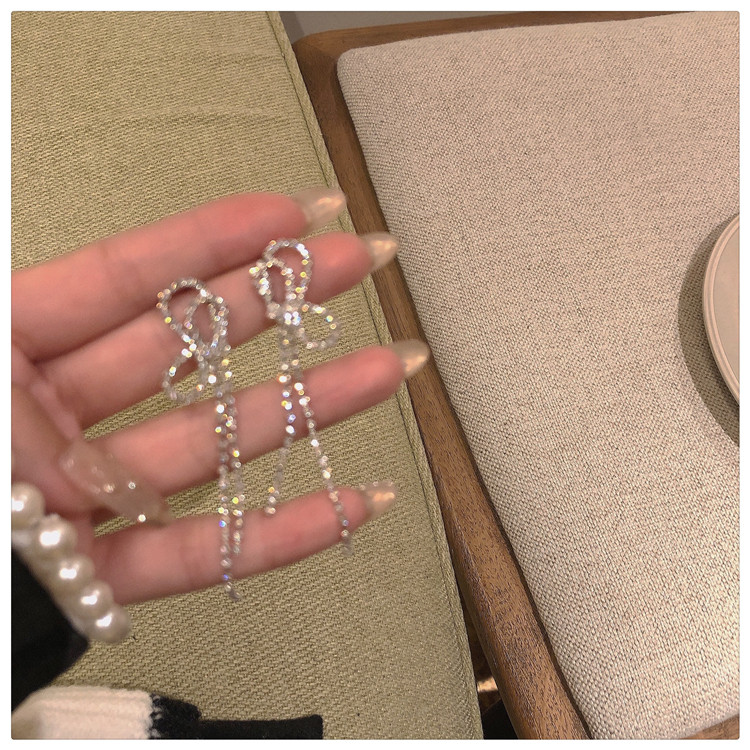 Super Flash High Sense Bow Stud Earrings ~ Ins South Korea Tide Earrings Long Fringe Earrings Female Ear Clip