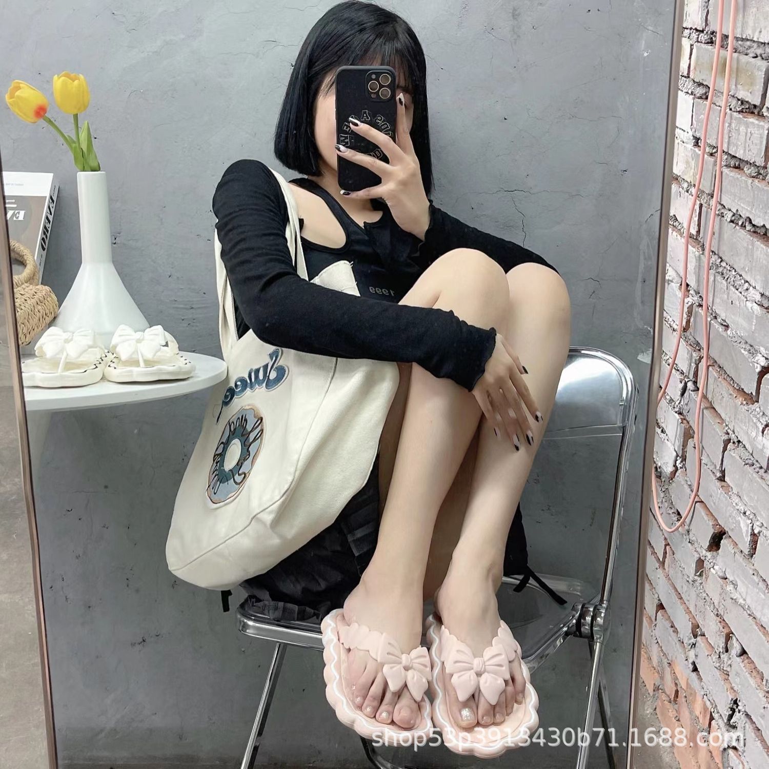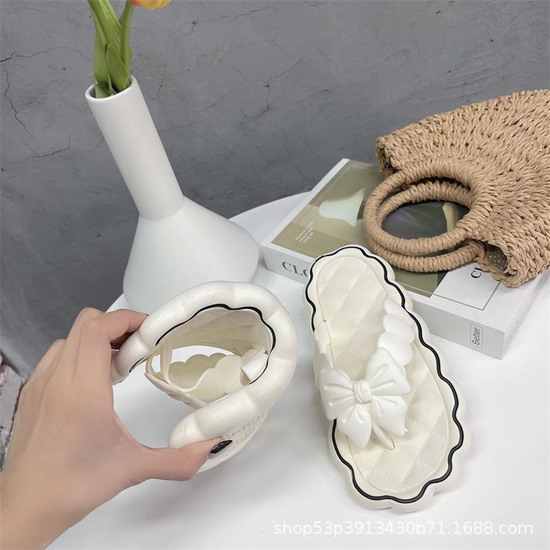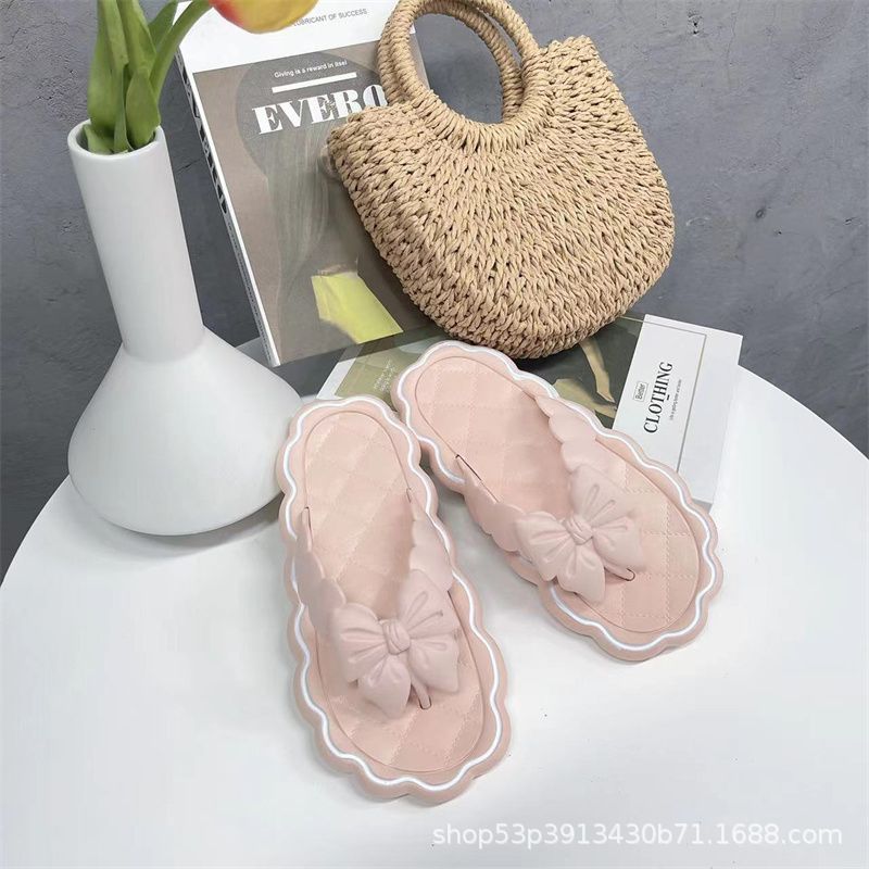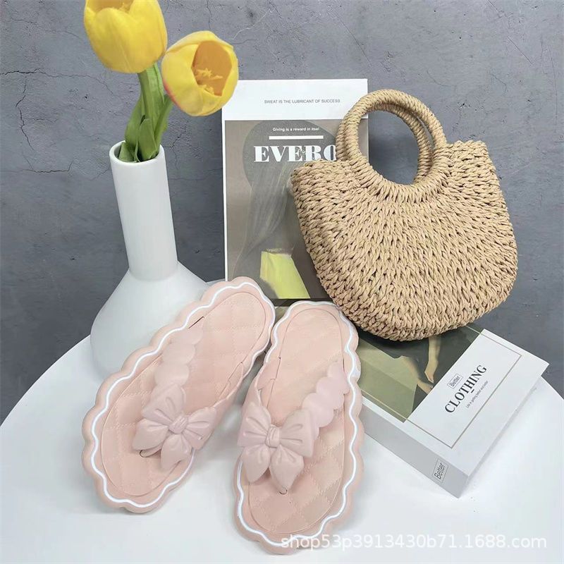 2023 New Outdoor Bowknot Flip Flops Summer Versatile Non-Slip Soft Back Thick Back Flat Slippers for Women Outdoor Shoes