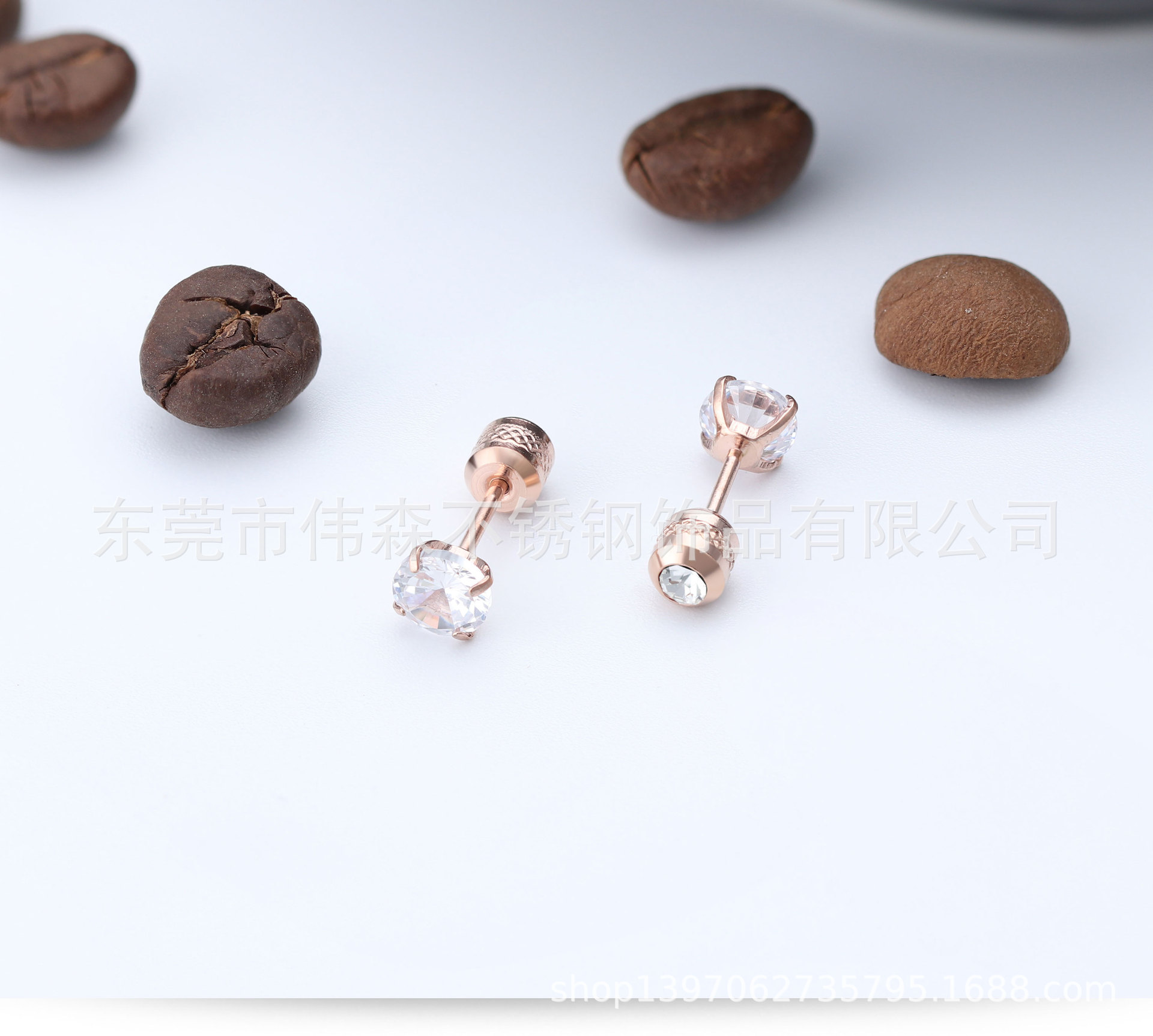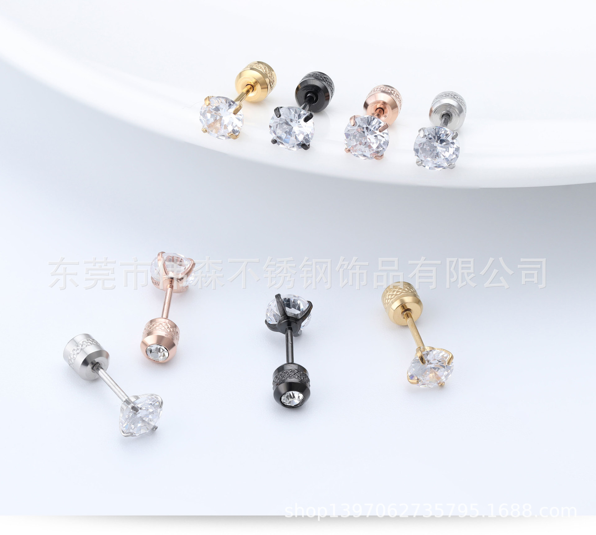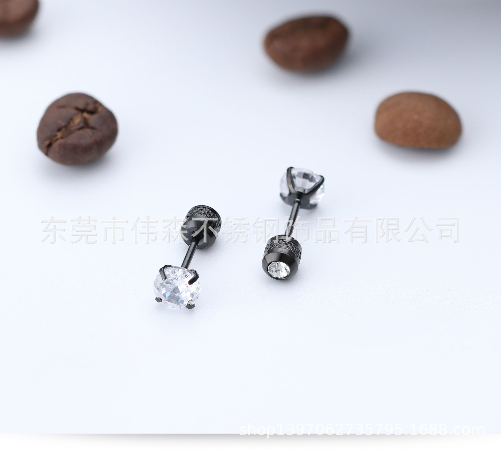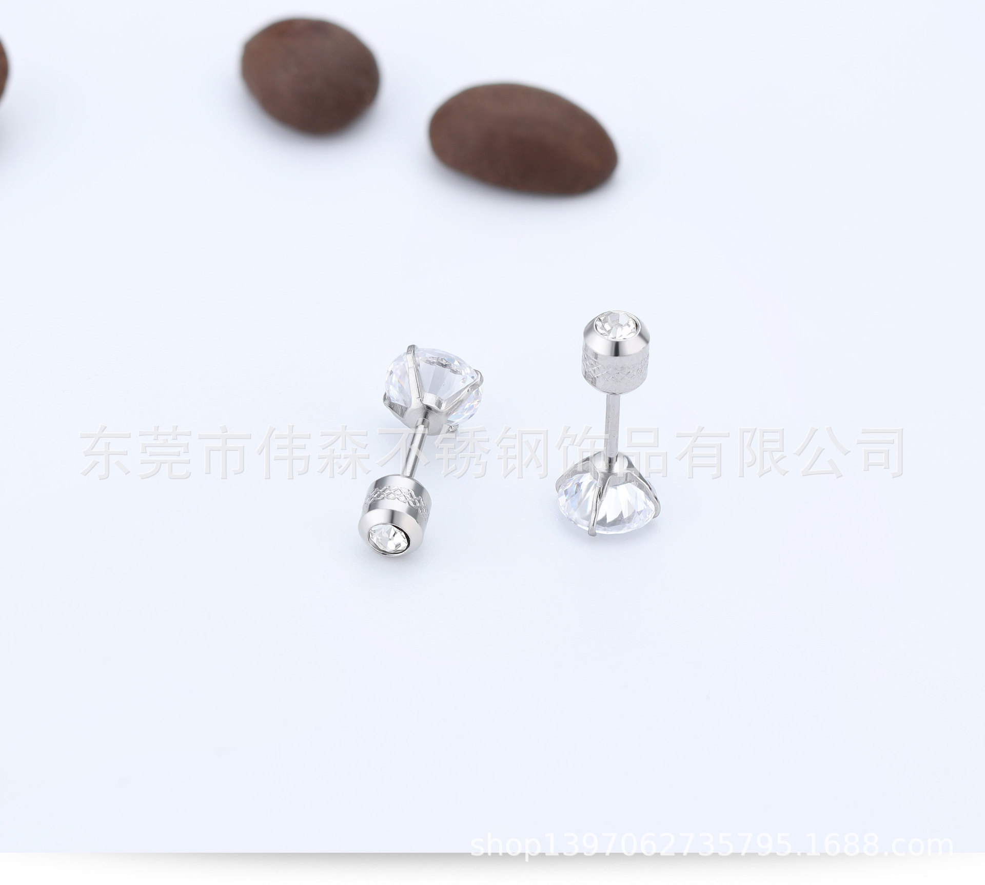 Titanium Steel Fashion Simple Internet Celebrity Four-Claw Zircon Stud Earrings Stainless Steel Thin Needle Earrings Two-Head Zircon Earrings Wholesale