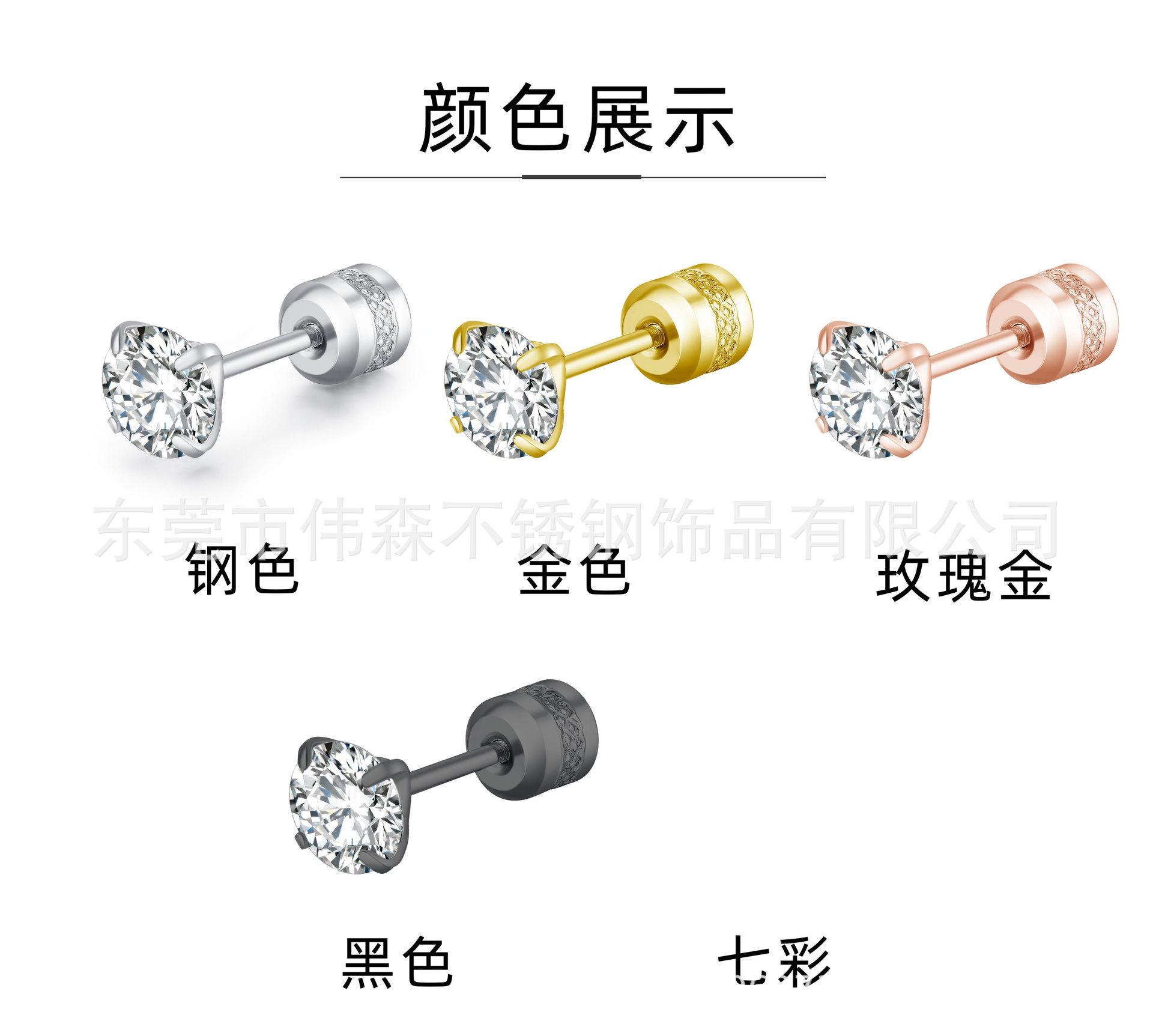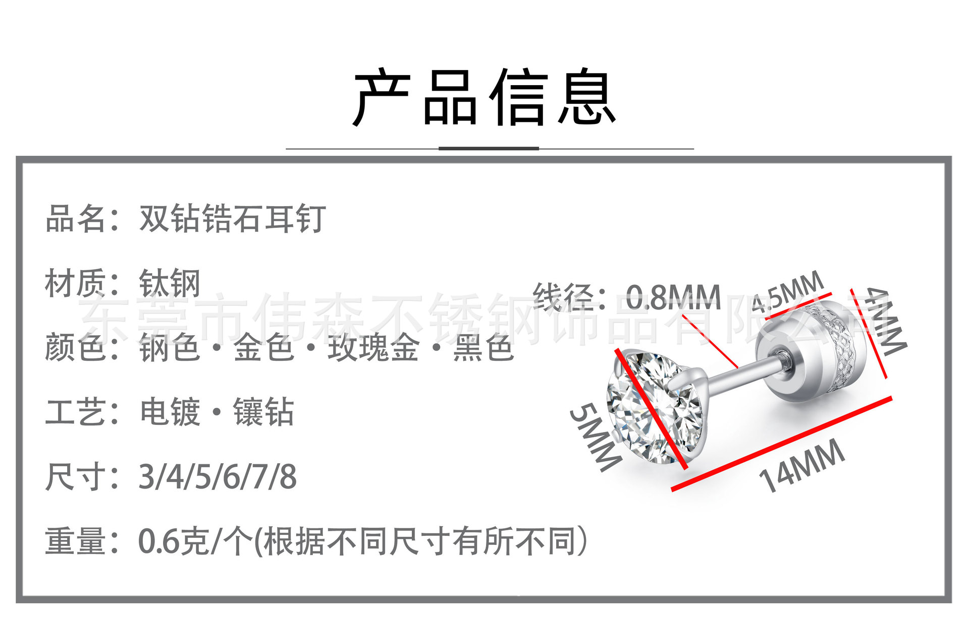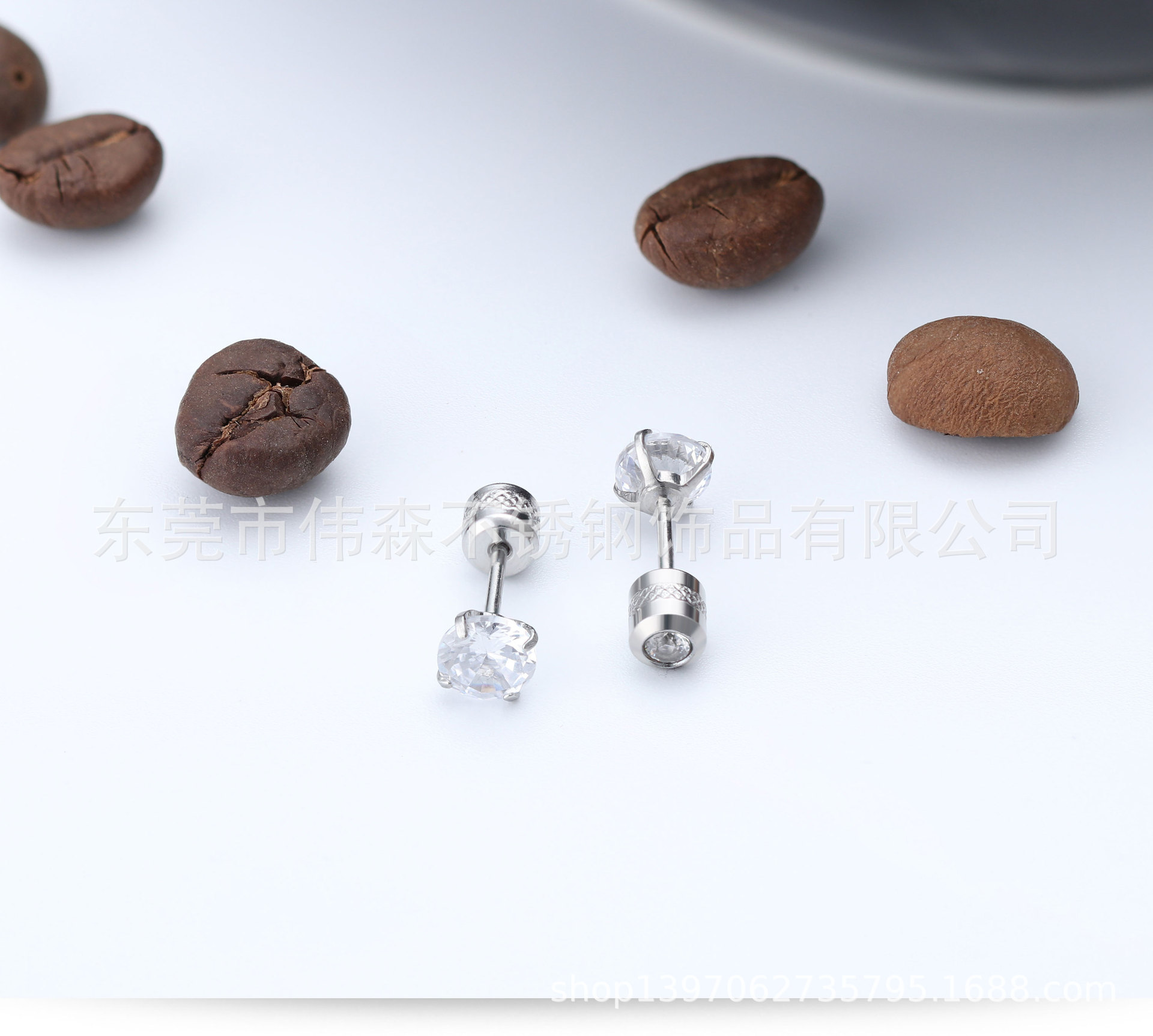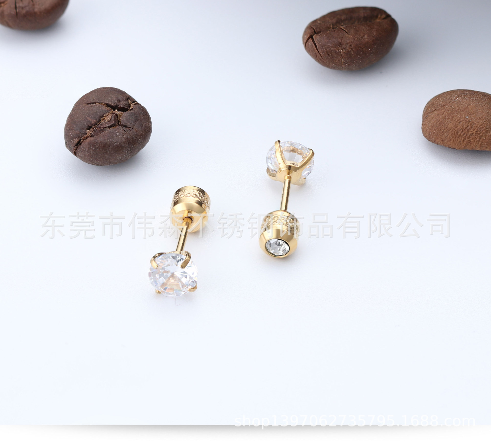 Titanium Steel Fashion Simple Internet Celebrity Four-Claw Zircon Stud Earrings Stainless Steel Thin Needle Earrings Two-Head Zircon Earrings Wholesale