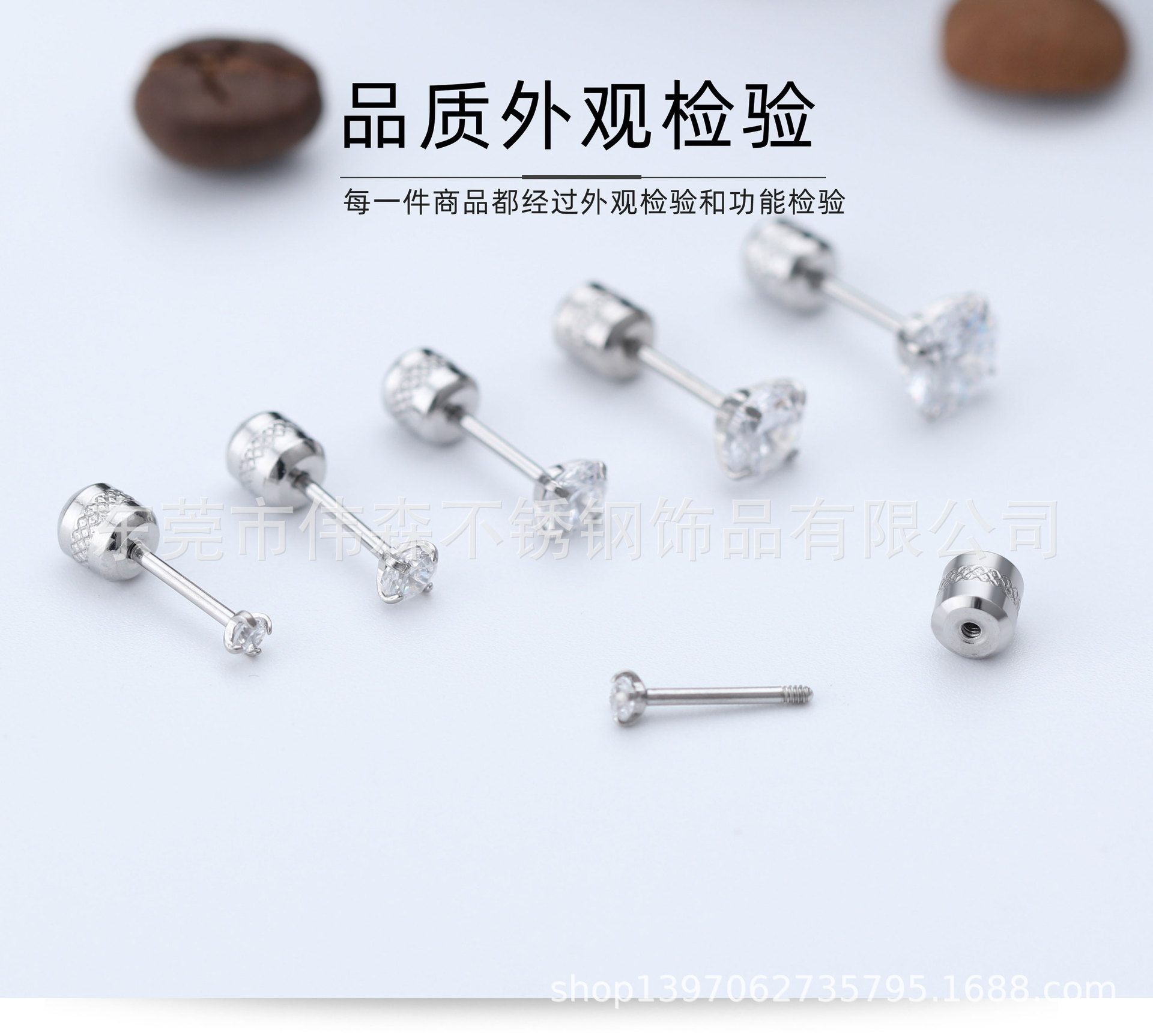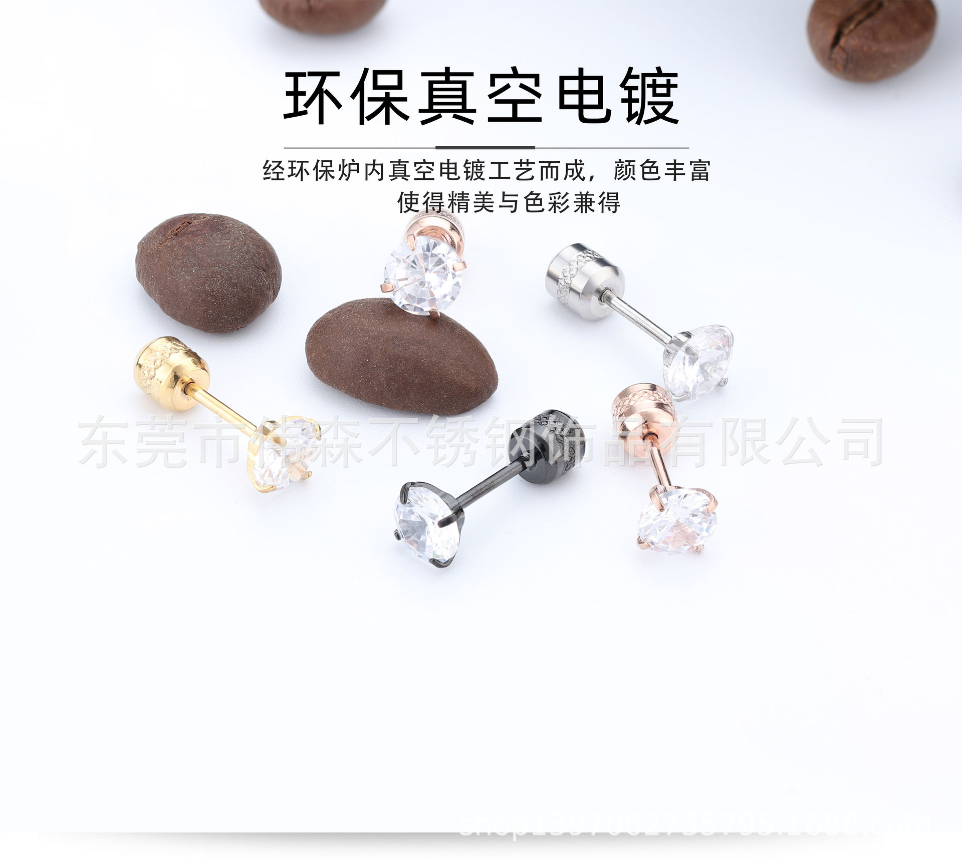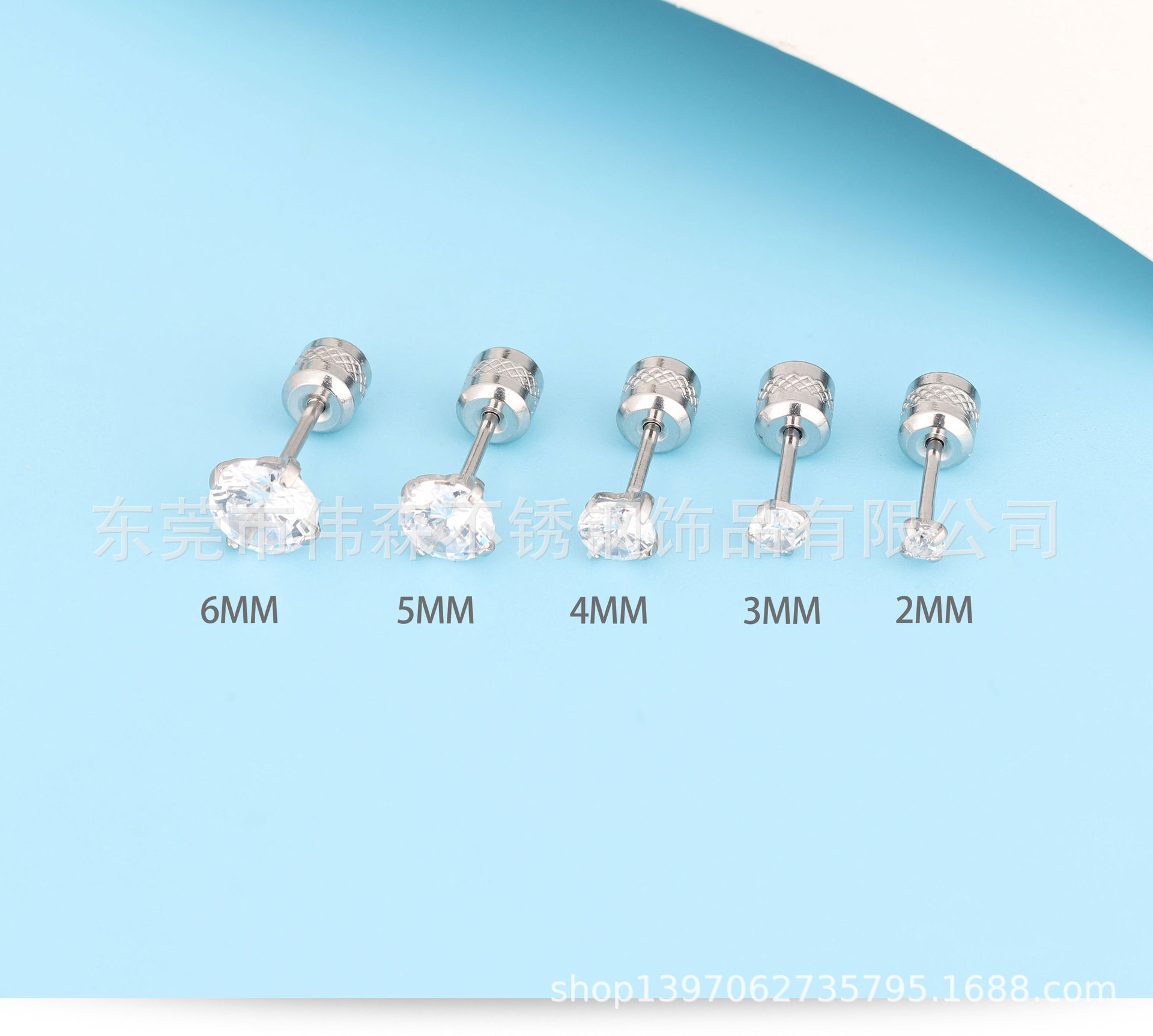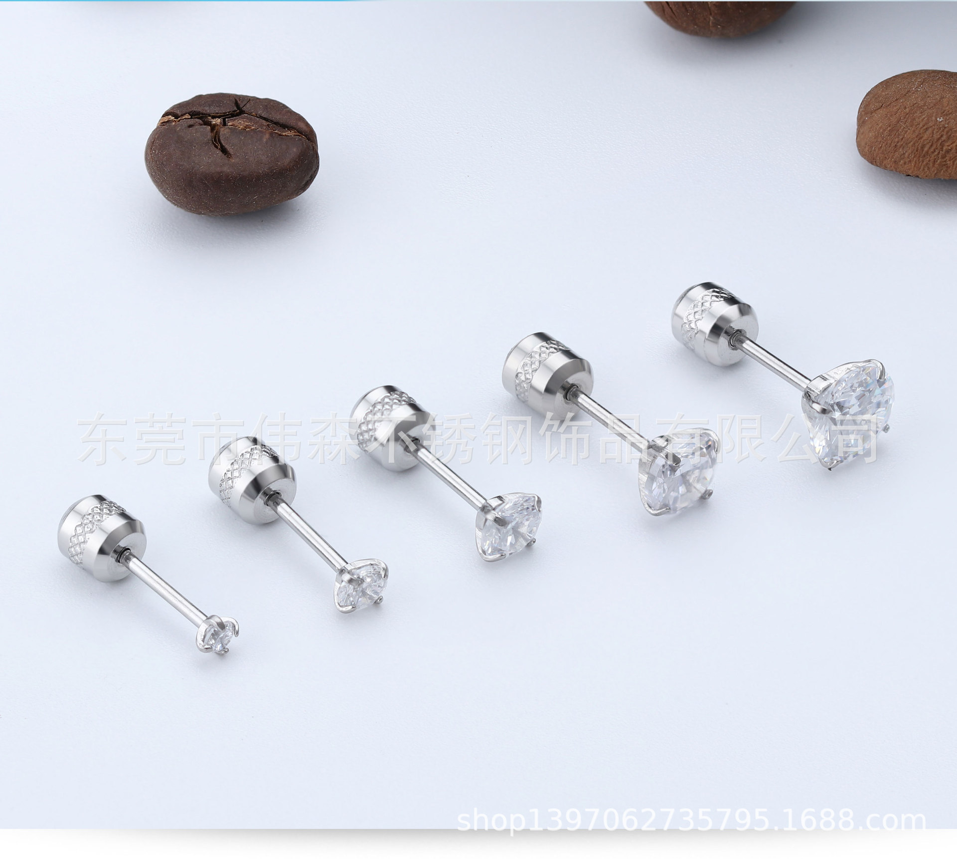 Titanium Steel Fashion Simple Internet Celebrity Four-Claw Zircon Stud Earrings Stainless Steel Thin Needle Earrings Two-Head Zircon Earrings Wholesale